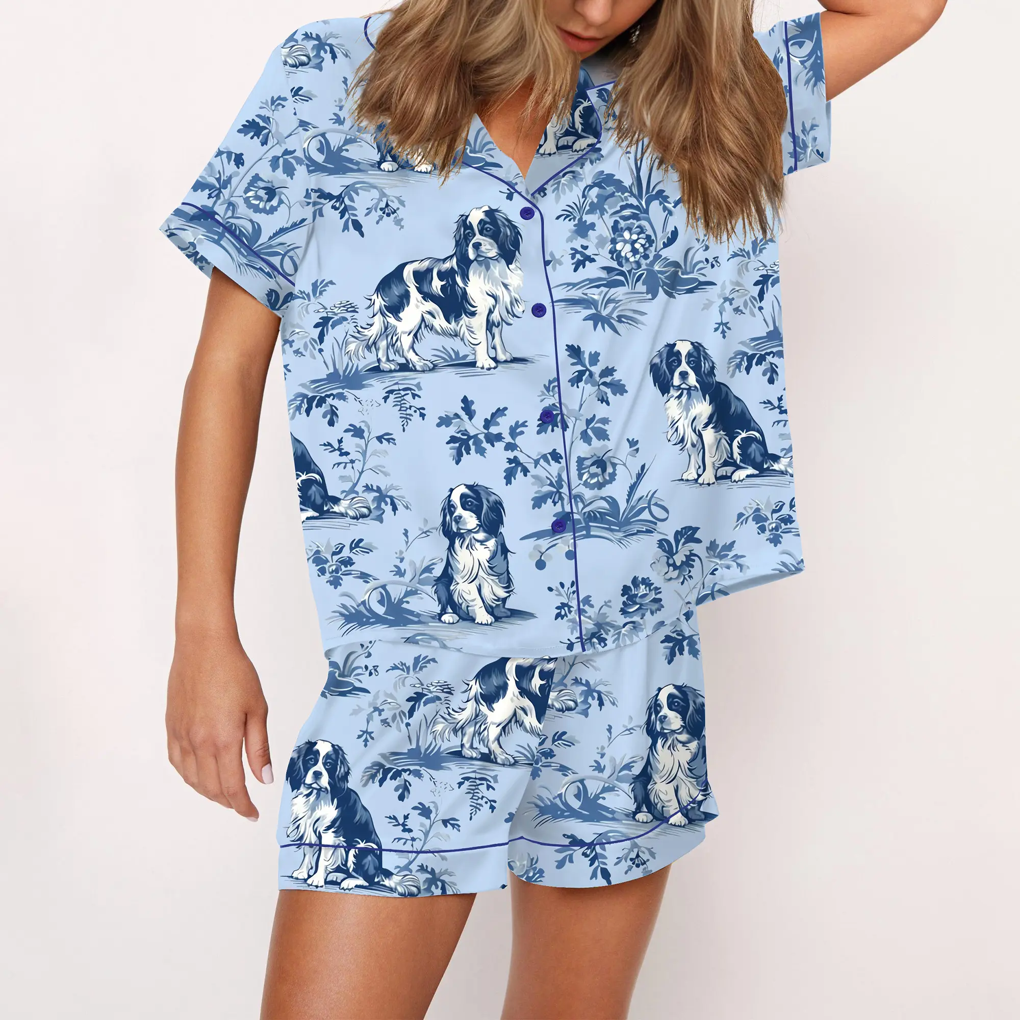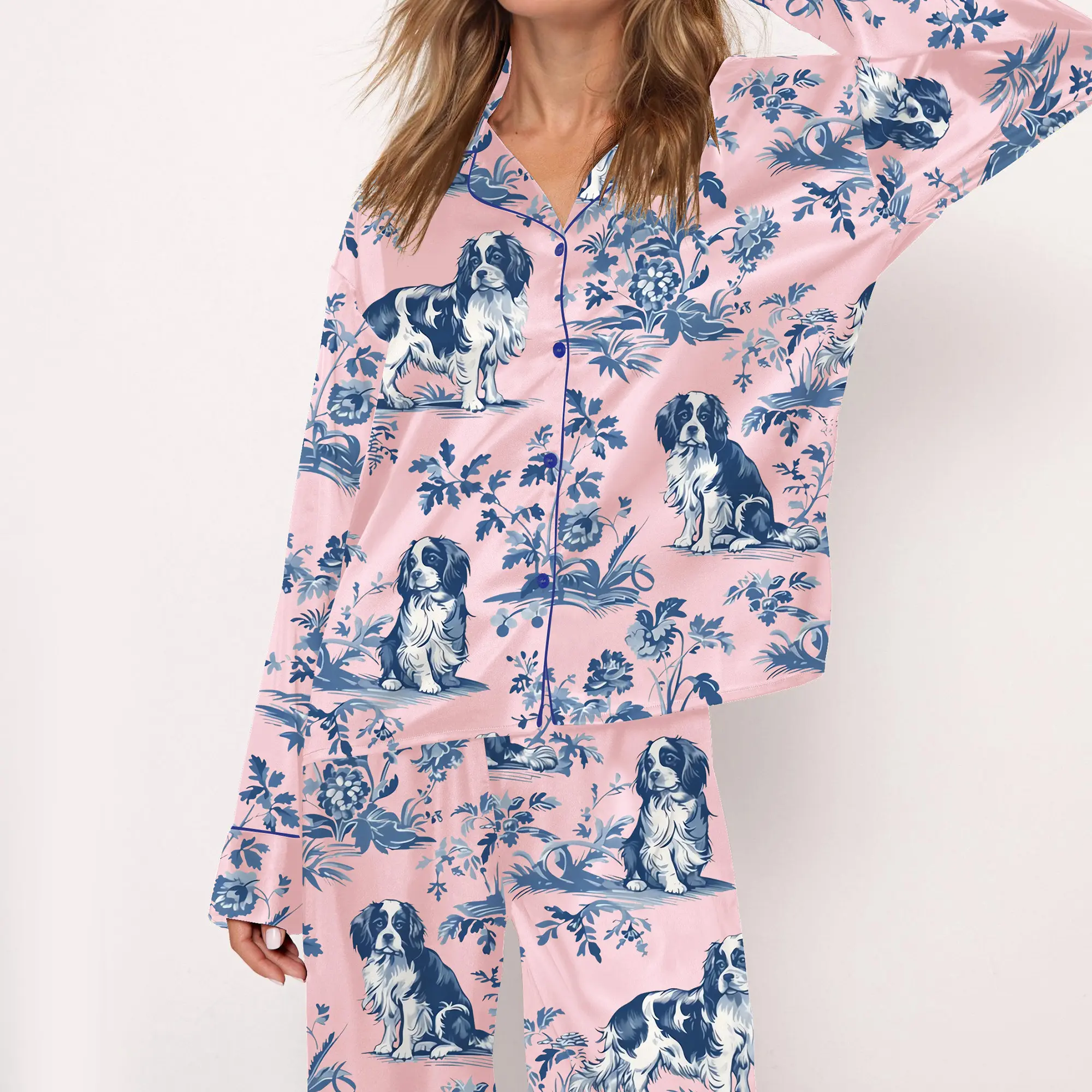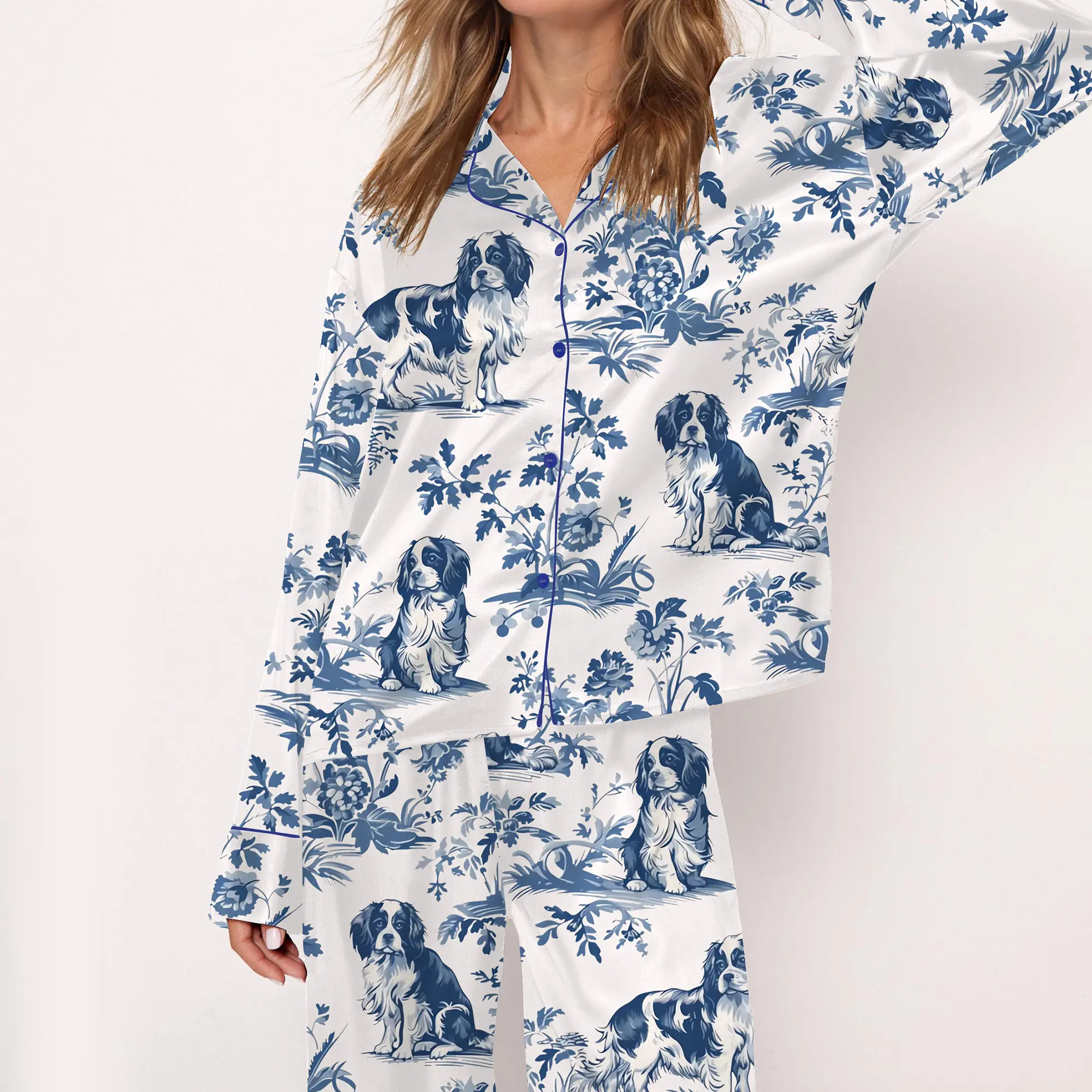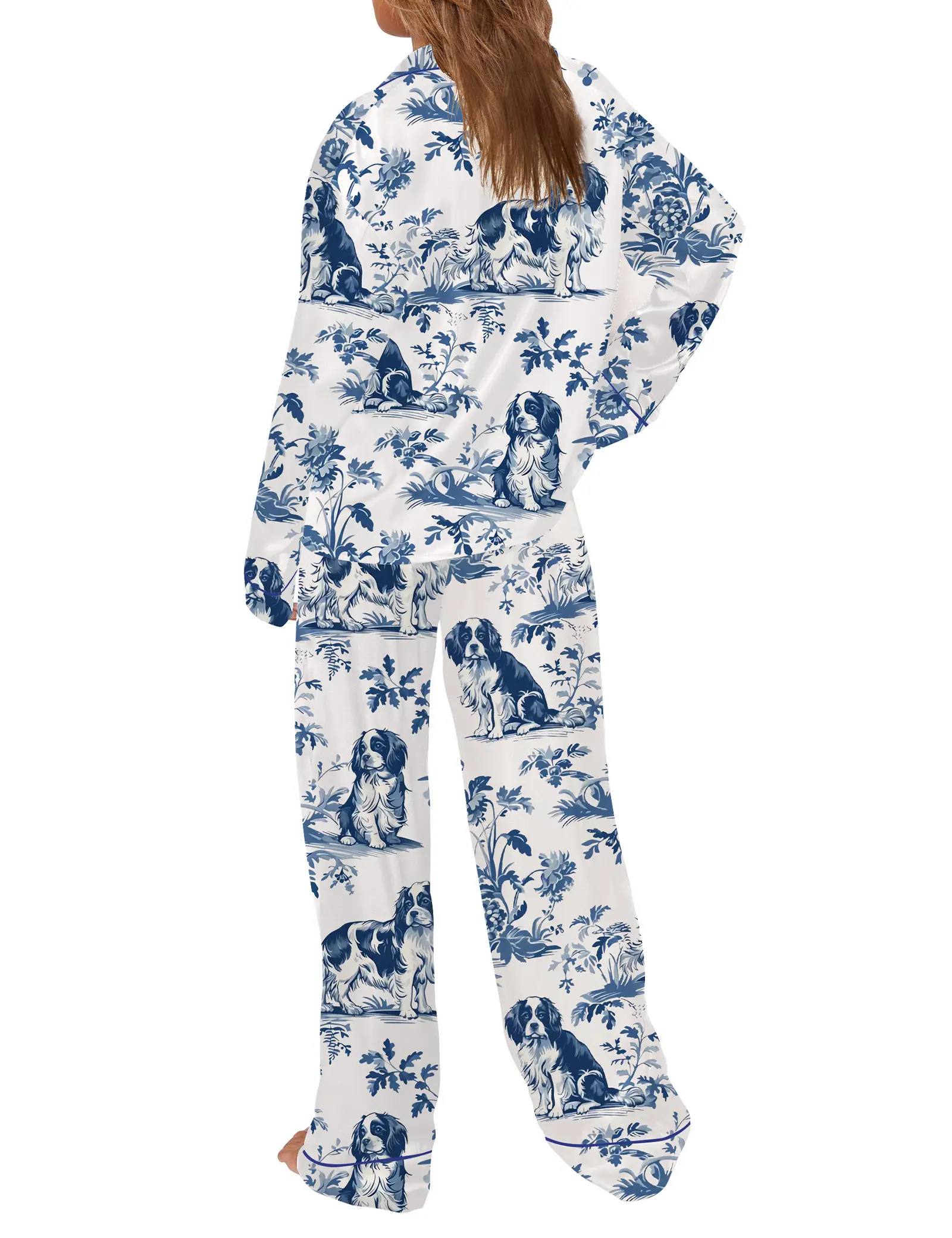 SHESHOW Cavalier King Charles Spaniel Silky Satin Pajama Set For Women Print Comfy Satin Sleepwear & Loungewear Pjs Printing Silky Top & Bottoms