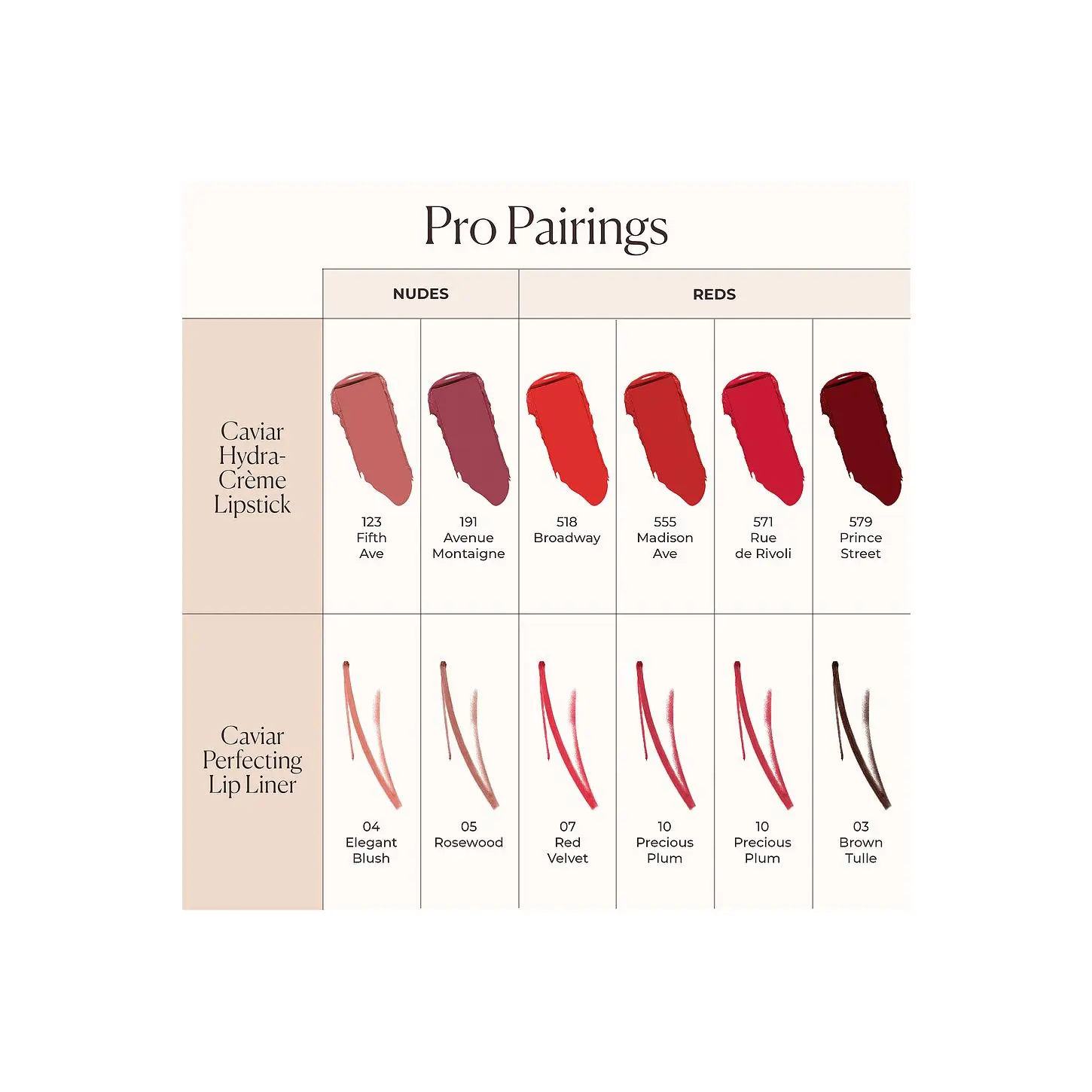 ·For a more defined lip look, line lips with a complementary shade of Caviar Perfecting Lip Liner (sold separately) before or after lipstick application.