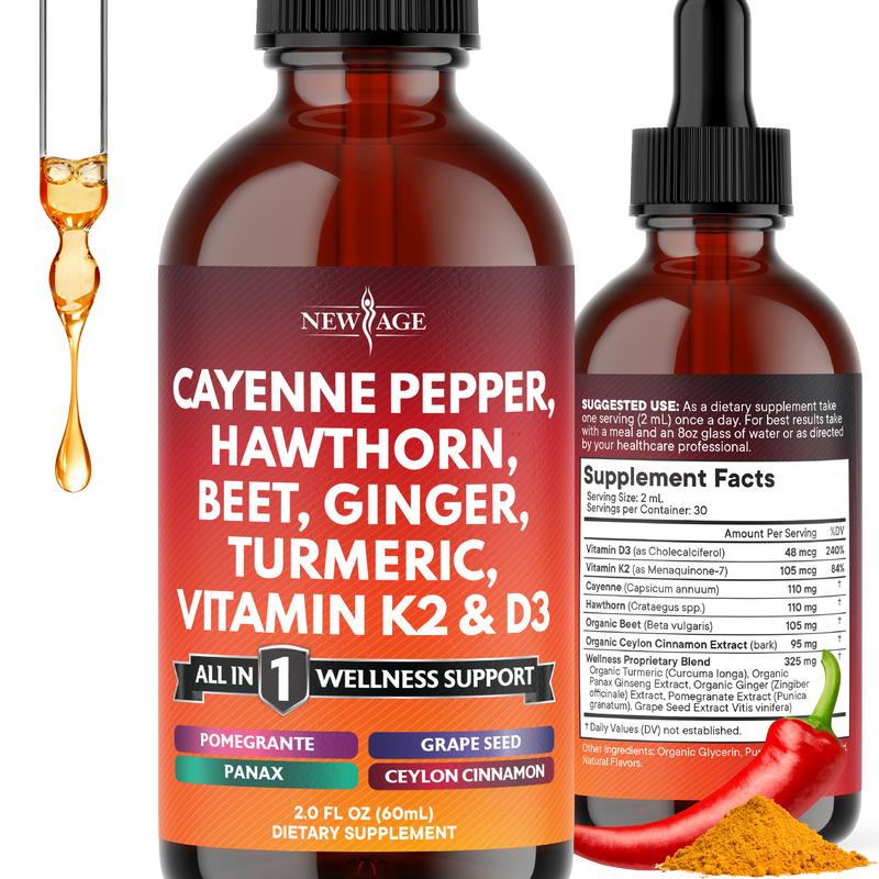 Elevate your health with our Cayenne Pepper Supplement Liquid Drops, a natural blend of ingredients designed to support your body's natural functions.