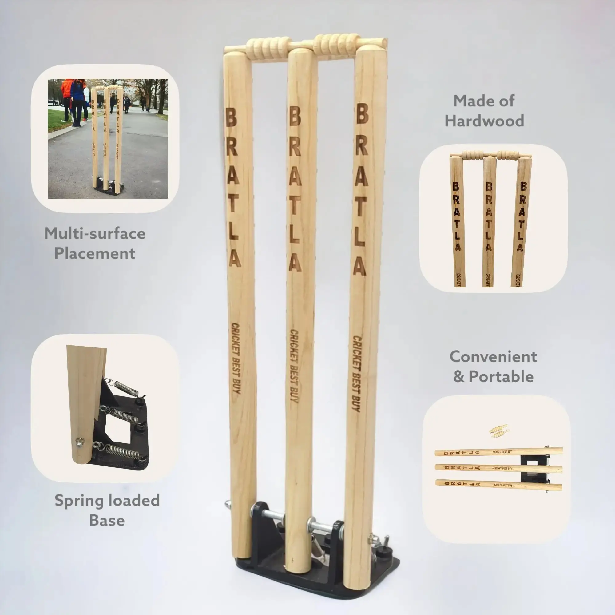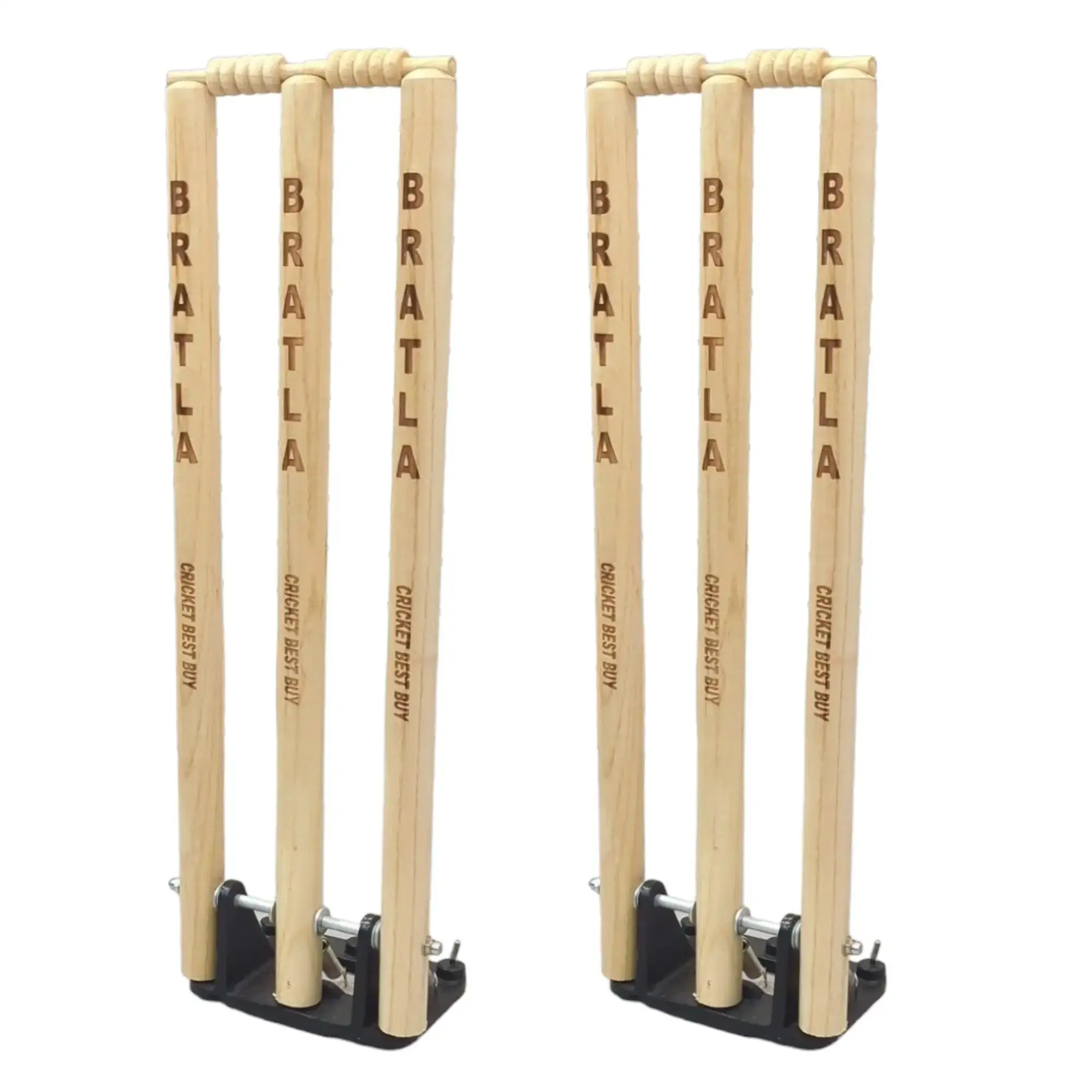 Cricket Stumps Wicket Wooden Spring Return CBB | Metal Base Multi Surface Placement.
