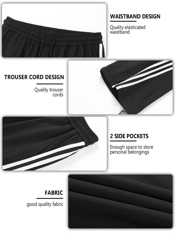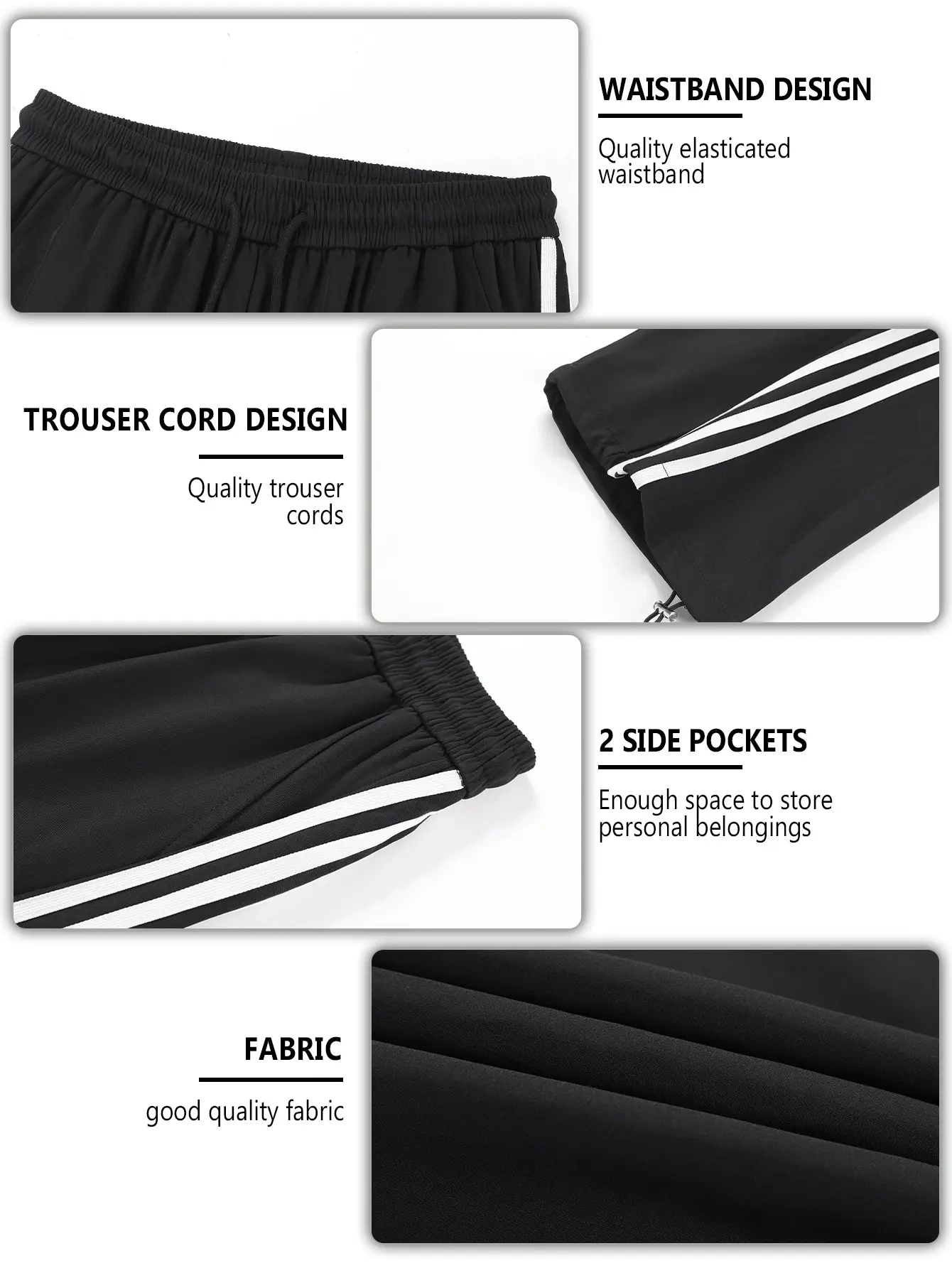 ·These men's sports pants feature a color-block design with side stripes. Perfect for all-season wear, they offer a casual and trendy look. 🌞