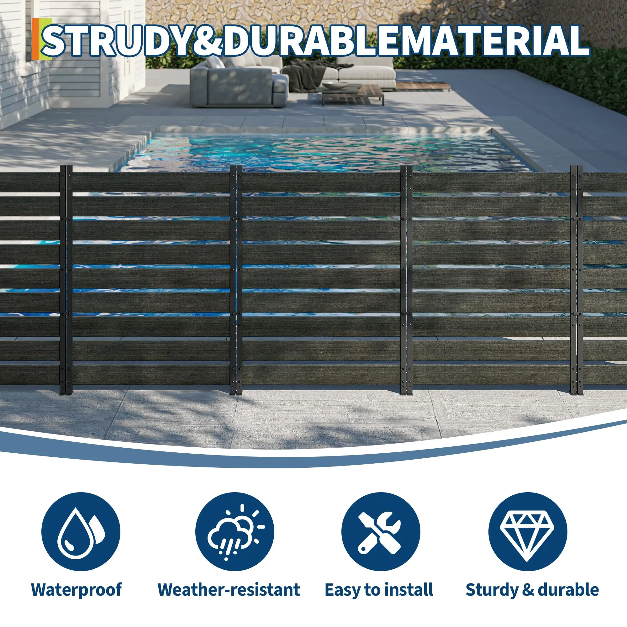 2,QUICK & EASY ASSEMBLY IN ABOUT 45 MINUTES:Enjoy a hassle-free setup with our straightforward assembly process. You can have your privacy screen fully assembled and ready for installation in approximately 45 minutes. All necessary hardware is included, making the initial build simple and efficient for anyone.