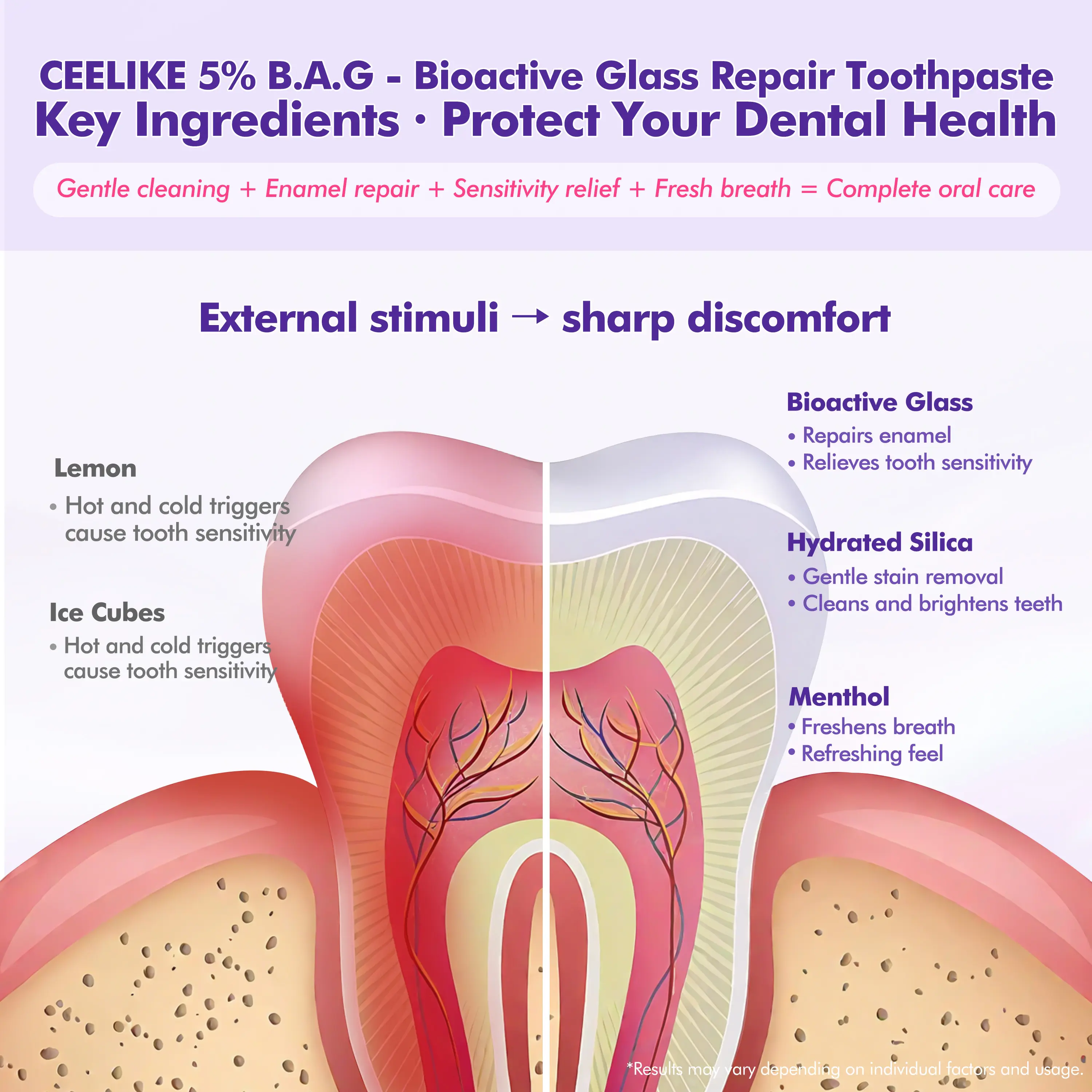 CEELIKE 5% B.A.G. Toothpaste - Bioactive Glass Technology for Enamel Repair, Discomfort Relief, Restored Comfort & Fresh Breath