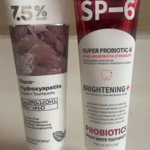 I have been using whitening products for a few years but the sensitivity that the red SP-6 causes is extreme. I will use it twice a week to help. The other toothpaste seems to be working good, no weird taste . It's hard to tell so soon what effects any would have.