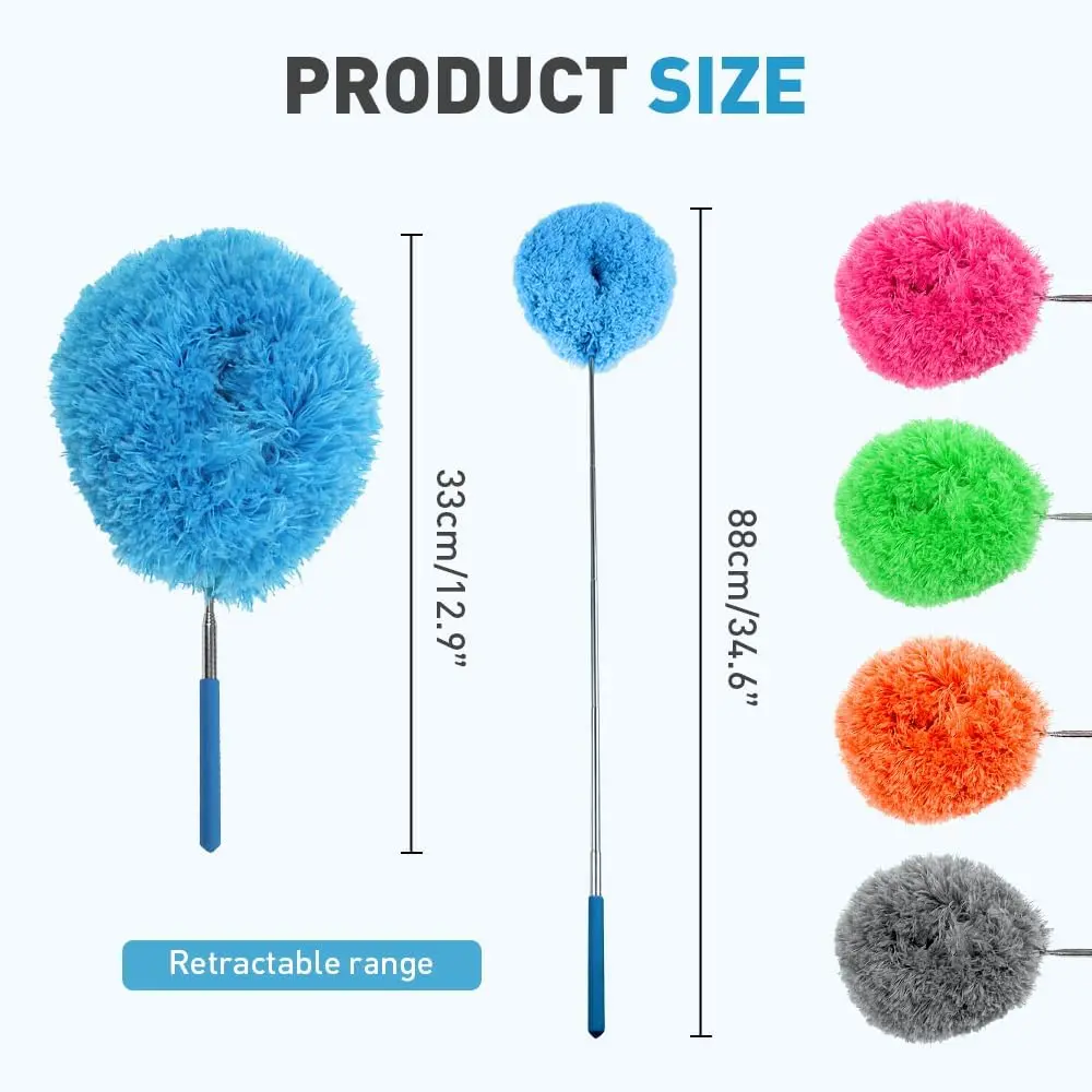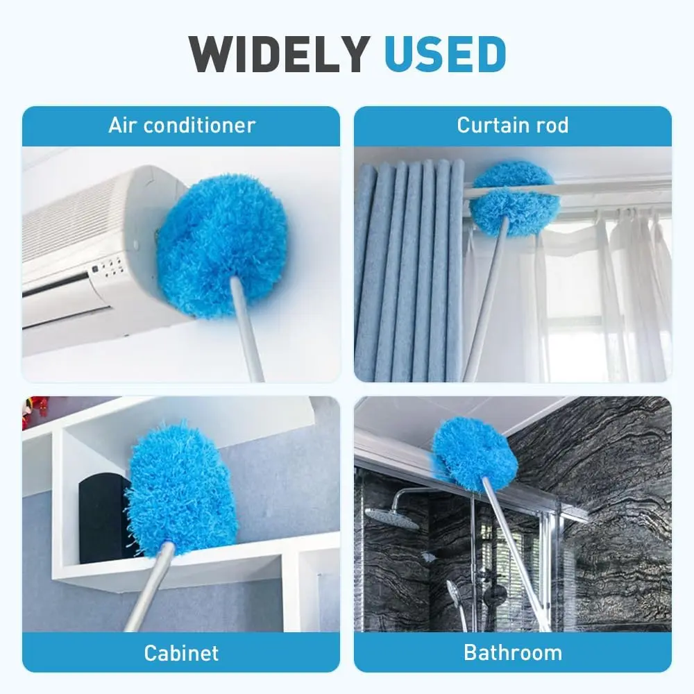 This duster with extension pole is versatile and can be used for various purposes in daily life, including cleaning home appliances, fans, cars, blinds, bookshelves, and hard-to-reach corners.