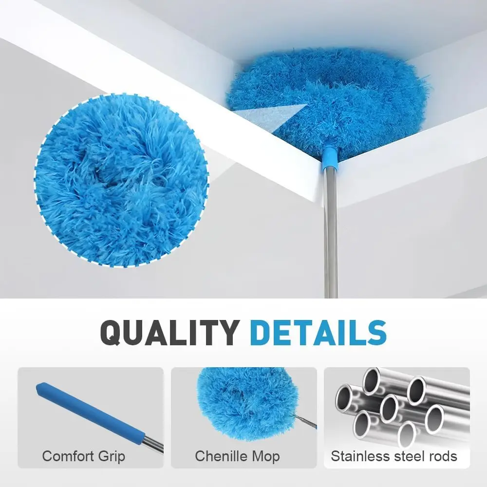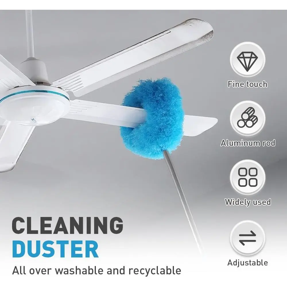 Ceiling Fan Cleaner Duster with Extension Pole, 2025 New Reusable Microfiber High Ceiling Fan Adjustable from 11.8 to 31.49 Inches for Cleaning Door Window Top Furniture (Blue)