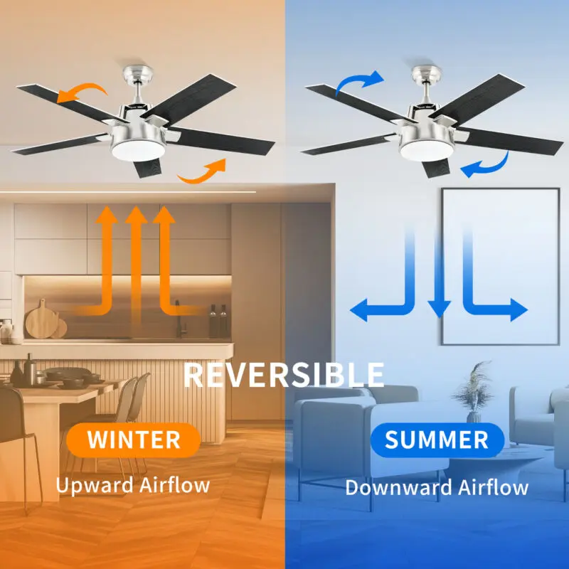 REVERSIBLE AIRFLOW: Reversible switch allows you to change the direction of rotation so that cool air or warm air is distributed evenly throughout the house all year round (Tap the reversible button starts in about 5 seconds)