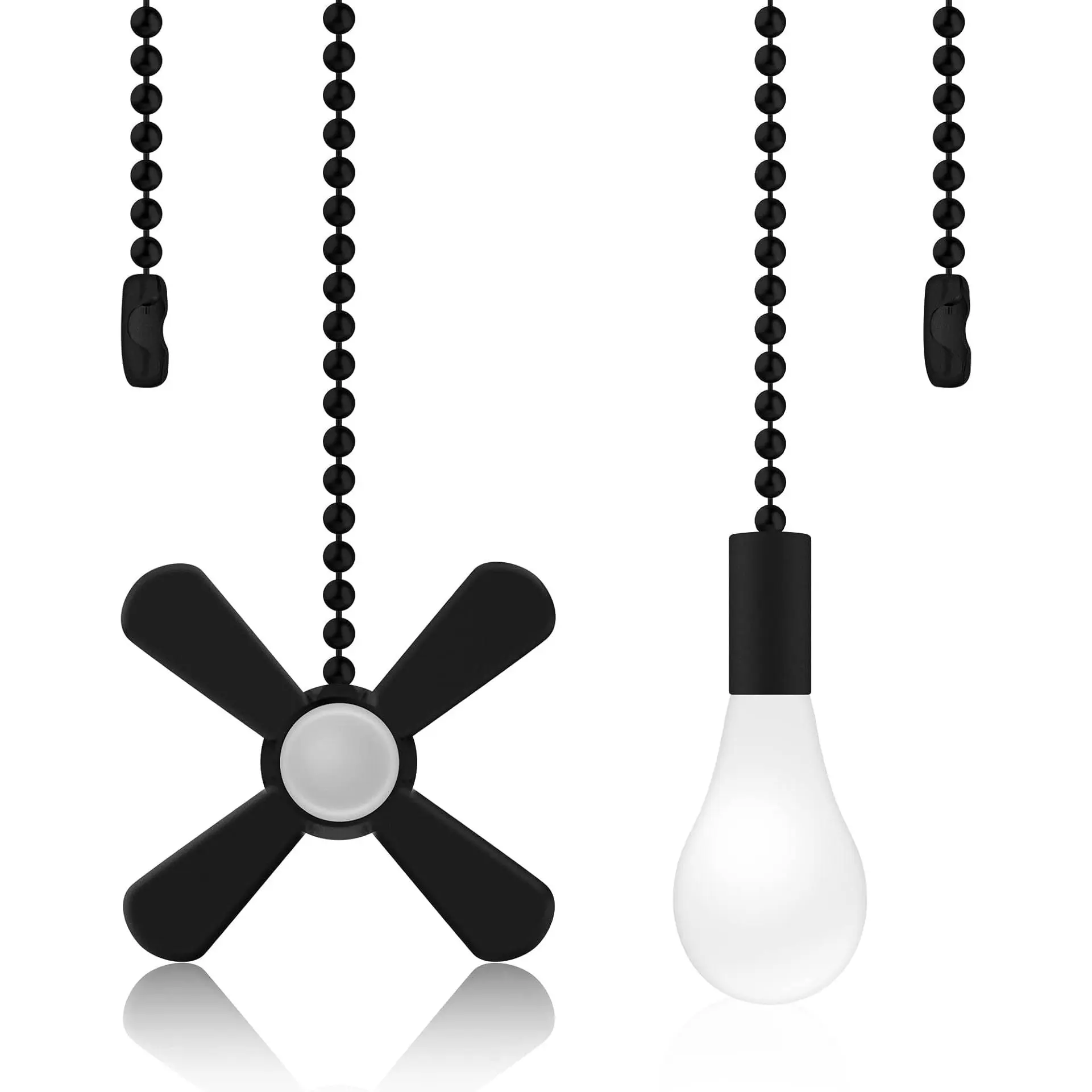 Ceiling Fan Pull Chains With Decorative, 4 count Of Black Ceiling Fan Chain Extenders 13.6 Inches Fit All Standard Ceiling Fans And Light FixturesPull Chain Extension With Connector.
