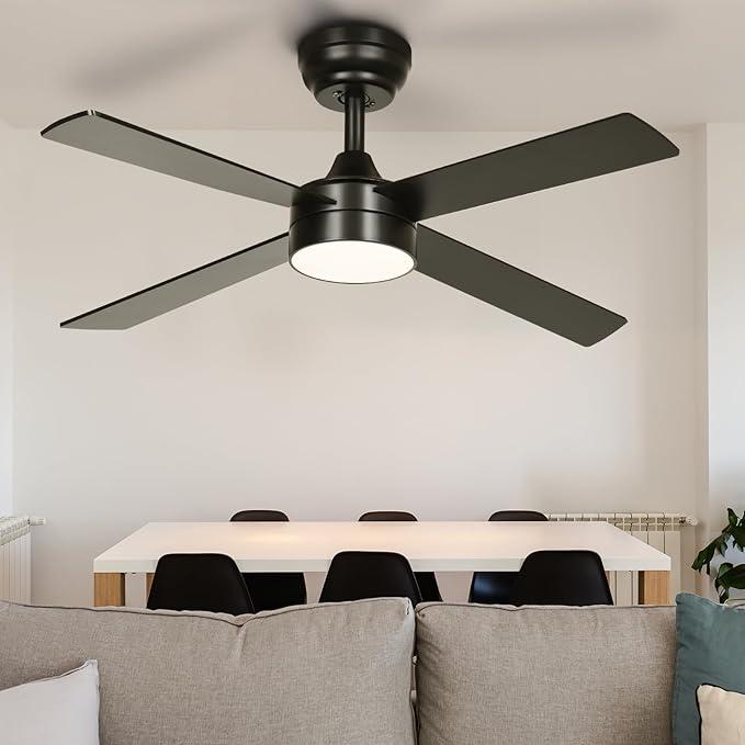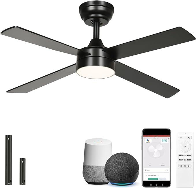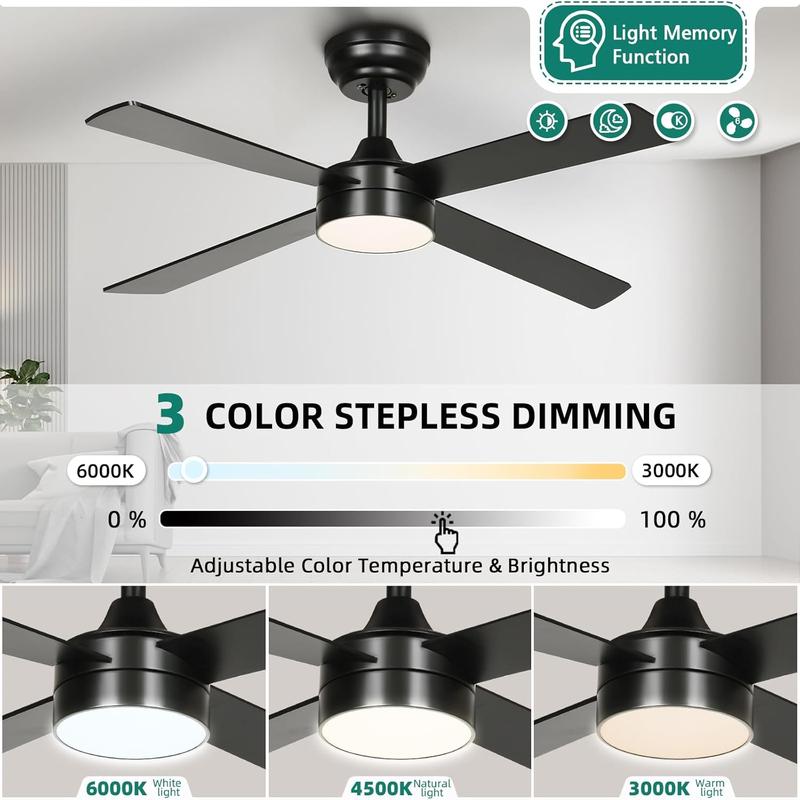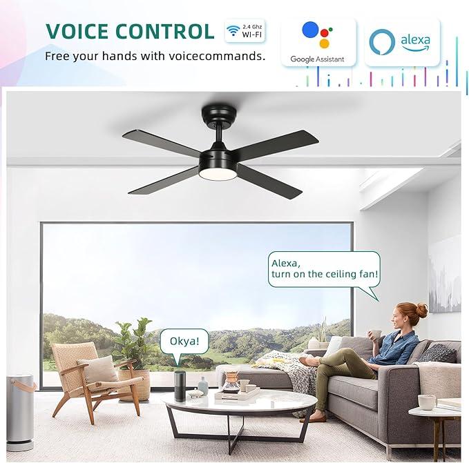 3 Ways to Control: This 48-inch ceiling fan with light and remote control allows you to never lose control of your indoor ceiling fans even if you lose your WiFi signal. You can control your black ceiling fan with light from any distance with the mobile app. Moreover, this smart ceiling fan works with Alexa and Google Assistant. "Alexa, Turn on the ceiling fan, set the Black ceiling fan in your bedroom to 6 speeds, set the yellow light to 85%.''