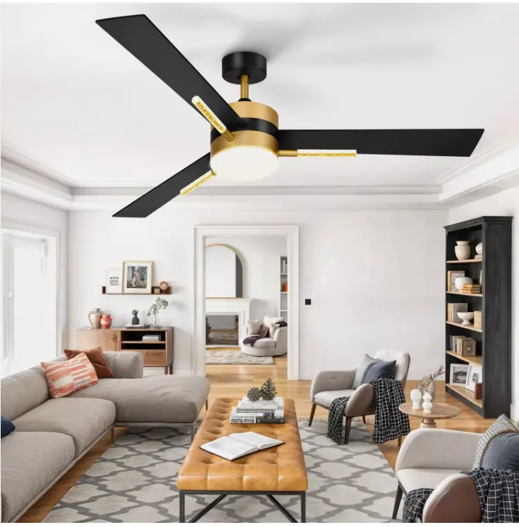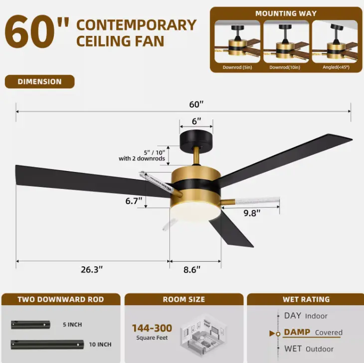 Modern 60 Inch Ceiling Fan This large ceiling fan includes 5“and 10” down rods, making it a versatile choice for both low and high ceilings . Crystal rods of the ceiling fans enhance the fan's decor appeal, making it a focal point in any room.