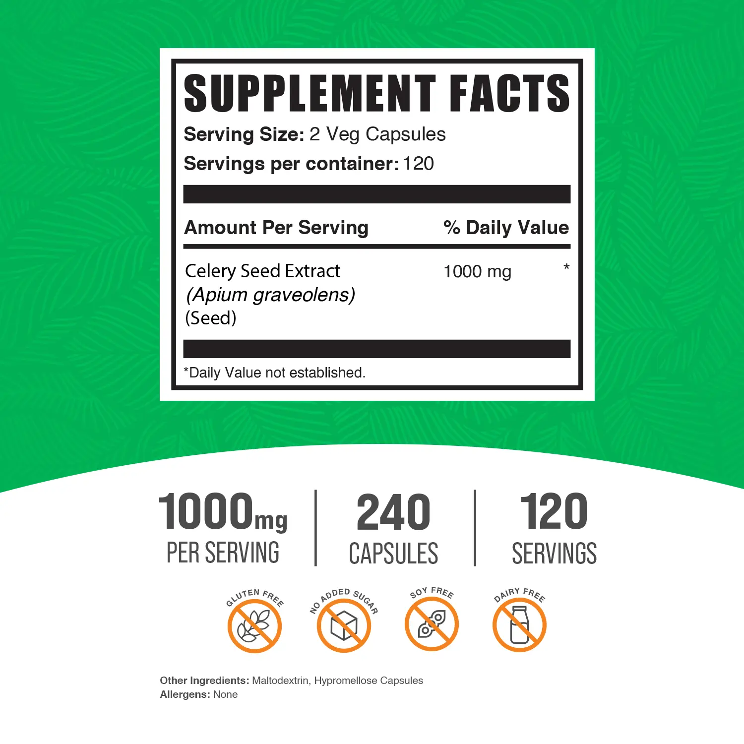 Digestive Support: Celery Seed Extract capsules may aid digestion by promoting healthy digestion processes and reducing bloating and gas.