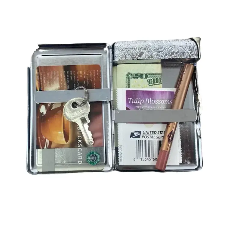 Pink Lily Stargazer Floral Butterfly Metal Silver Case Wallet