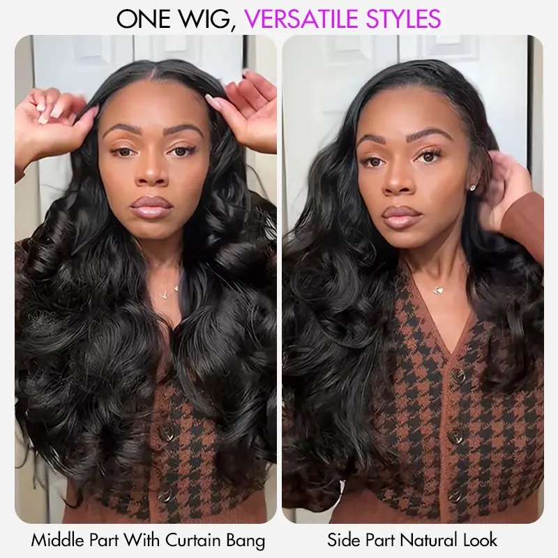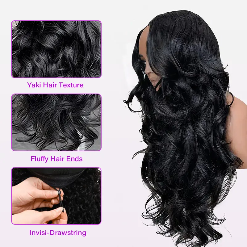 I love the texture on this wig. The yaki body wave blends really well with natural hair and the layers give it nice volume. The V-part makes it super easy to install.
