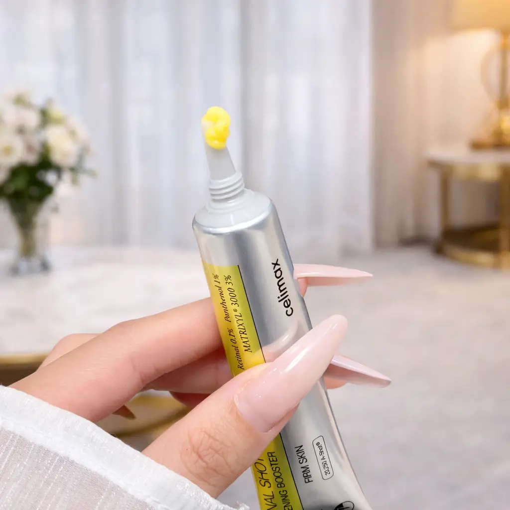 **Celimax The Vita A Retinal Shot Tightening Booster** is a high-performance skincare treatment designed to visibly minimize pores, smooth wrinkles and fine lines, and improve overall skin firmness. Powered by **advanced Retinal (Vitamin A)**, this concentrated booster works faster and more effectively than traditional retinol to support skin renewal and elasticity.