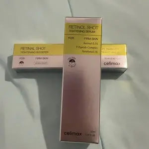 Celimax The Vita A Retinal Shot Tightening Booster 15ml is an innovative skincare product containing liposomized retinal and Matrixyl, designed to address skin concerns such as wrinkles, uneven texture, and enlarged pores. Combined with A-Shot technology, it enhances the delivery of these ingredients.