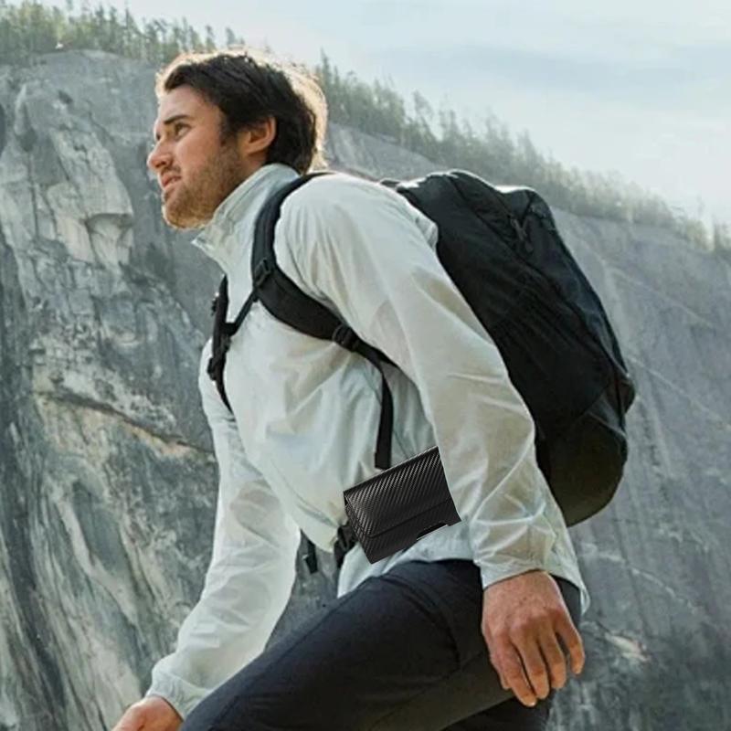 Cell Phone PU Leather Holster Carbon Fiber Texture 360°Rotating Belt Clip Magnet Pouch Man Waist Bag Carrying Perfect For Outdoor Daily Use