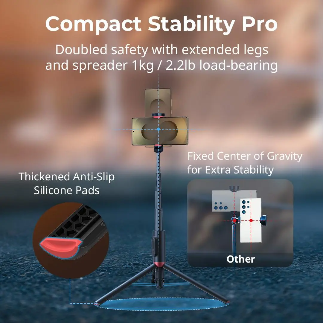 Longer and more sturdy then any other self stick tripod combo I have tried before