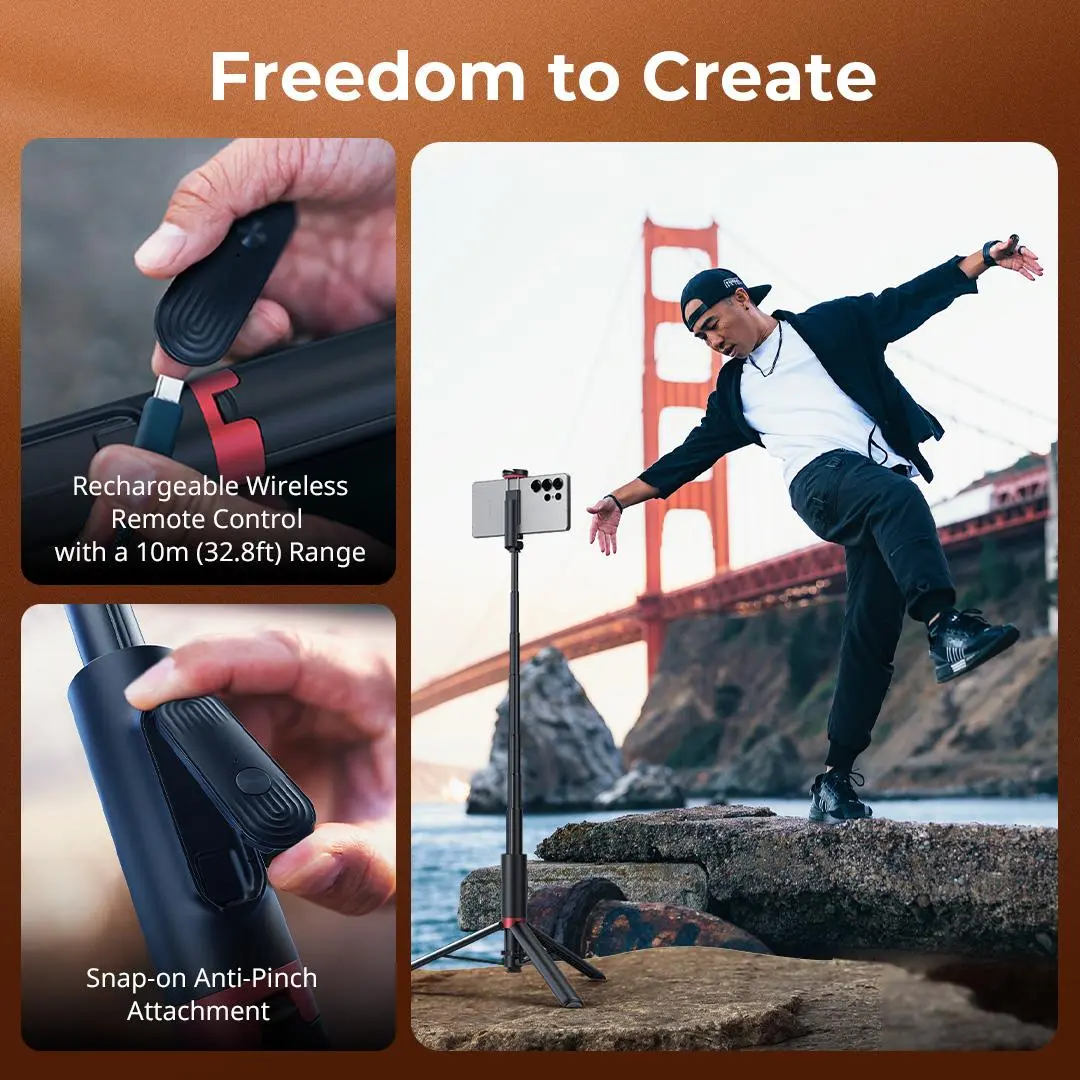 Everything I needed in a selfie stick, tripod, adjustable, 51” tall, BT remote.