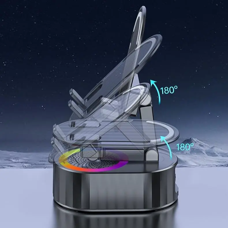 Ever wanted a phone stand that does way more than just hold your device? Meet the AKLLCCR 5-in-1 cell phone stand! It’s not just a stand—it’s your music buddy, mood light, and emergency power bank all rolled into one sleek design. Whether you’re binge-watching, video calling, or just vibing to your favorite tunes, the 5.3 HD surround subwoofer sound with 9D effects brings your audio to life. The stand rotates a full 300°, so you can find the perfect angle without fumbling. Plus, the colorful ambient light sets the mood whether you’re working late or relaxing. No Bluetooth? No problem! The wireless induction speaker connects automatically with a sensitive sensor—just plug it in and enjoy. With a powerful 5000mAh battery, you can jam all day and even charge your phone when it’s running low. Charging the stand itself takes only about 3 hours. It’s lightweight, foldable, and has a non-slip base to keep your phone safe and steady. Ready to upgrade your desk or nightstand? Grab the AKLLCCR 5-in-1 phone stand and enjoy hands-free convenience, killer sound, and vibrant lighting all in one handy gadget!