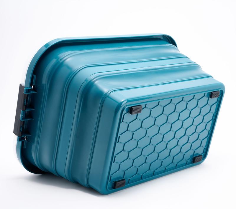 This Cella Set of 2 XL Collapsible Storage Bins with Lids & Wheels are the perfect addition for all your storing needs. Bins can be fitted wi wheels to easily moves around or feet to not move. Fold to store. Measure Approximately: 22-1/2" x 14-1/2" x 11-1/4". Max weight limit per unit and when stacking is 40lbs. Choice of color: Glader Grey, Seaport Teal, Green Tea or Red. Imported.