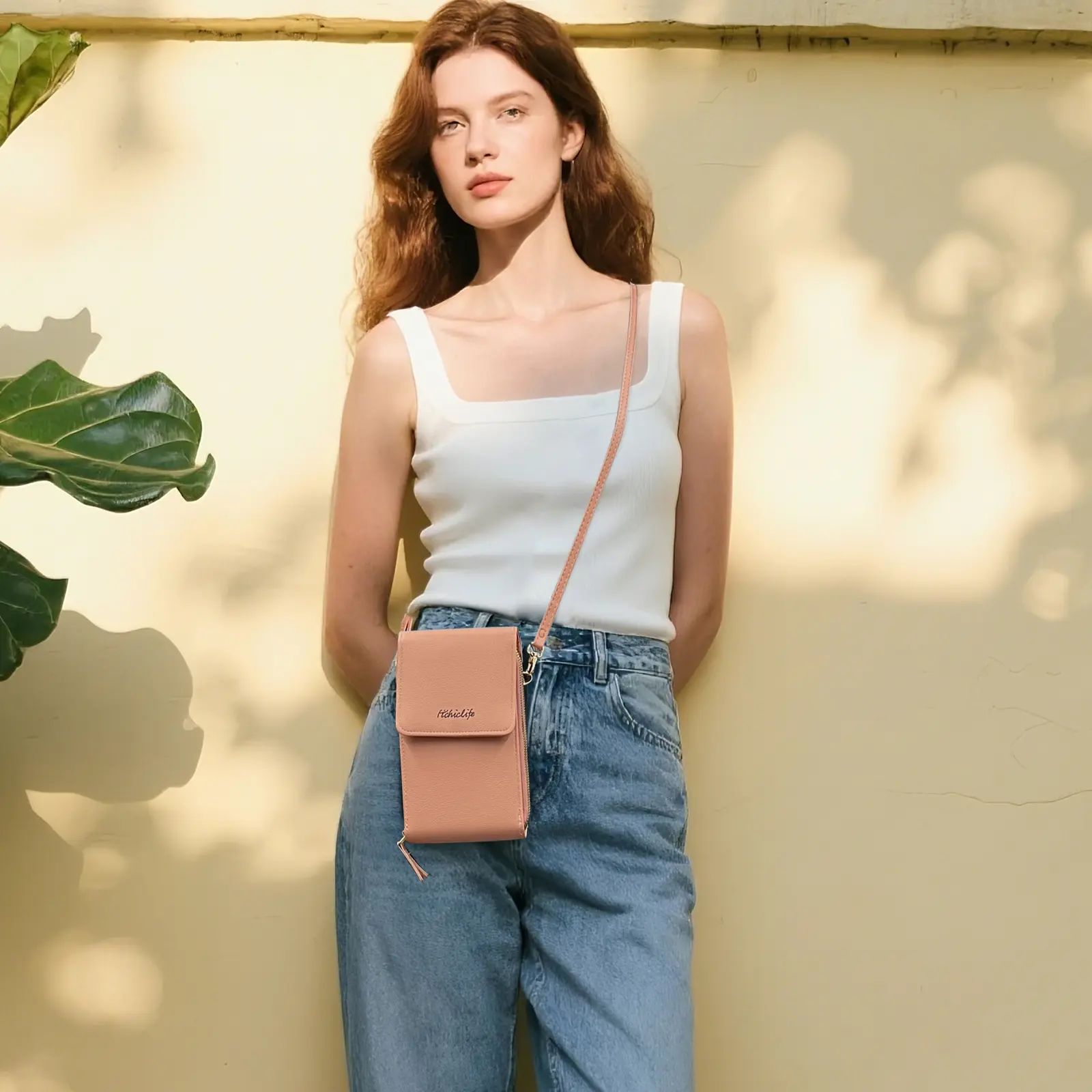 Súper cómoda práctica y se puede poner el cell en la cartera y al mismo tiempo usarlo