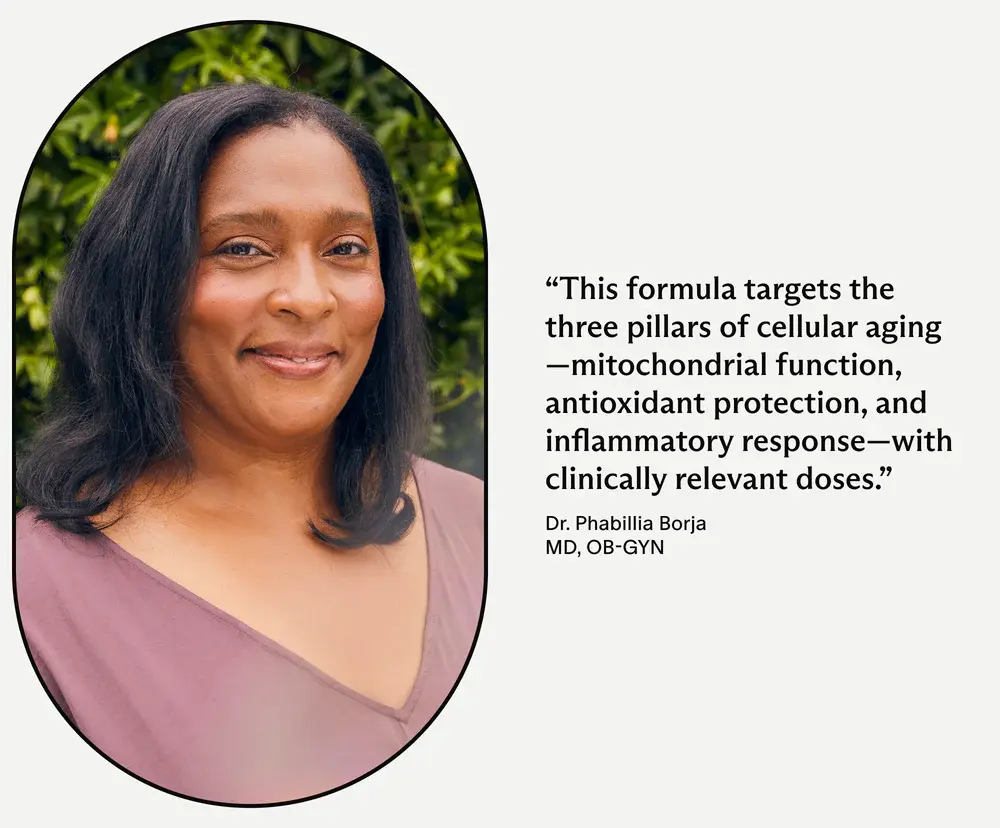 Targeted and expert-formulated antioxidants to support healthy aging at a cellular level. Our Cellular Aging Support helps protect cells from oxidative stress, maintain a healthy inflammatory response, and supports cellular energy production, mitochondrial health, ATP production, and ovarian health.*