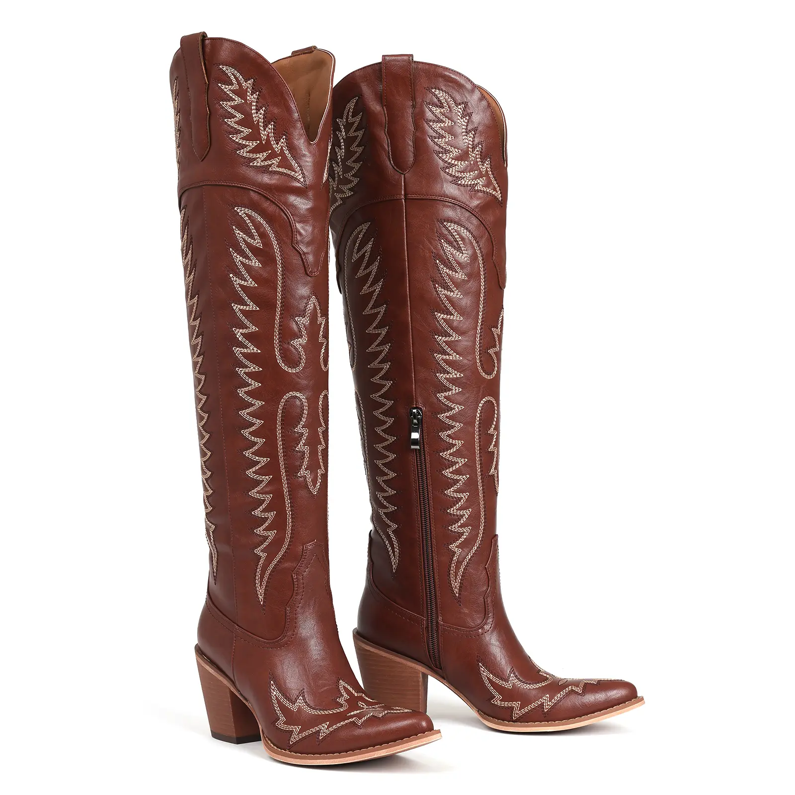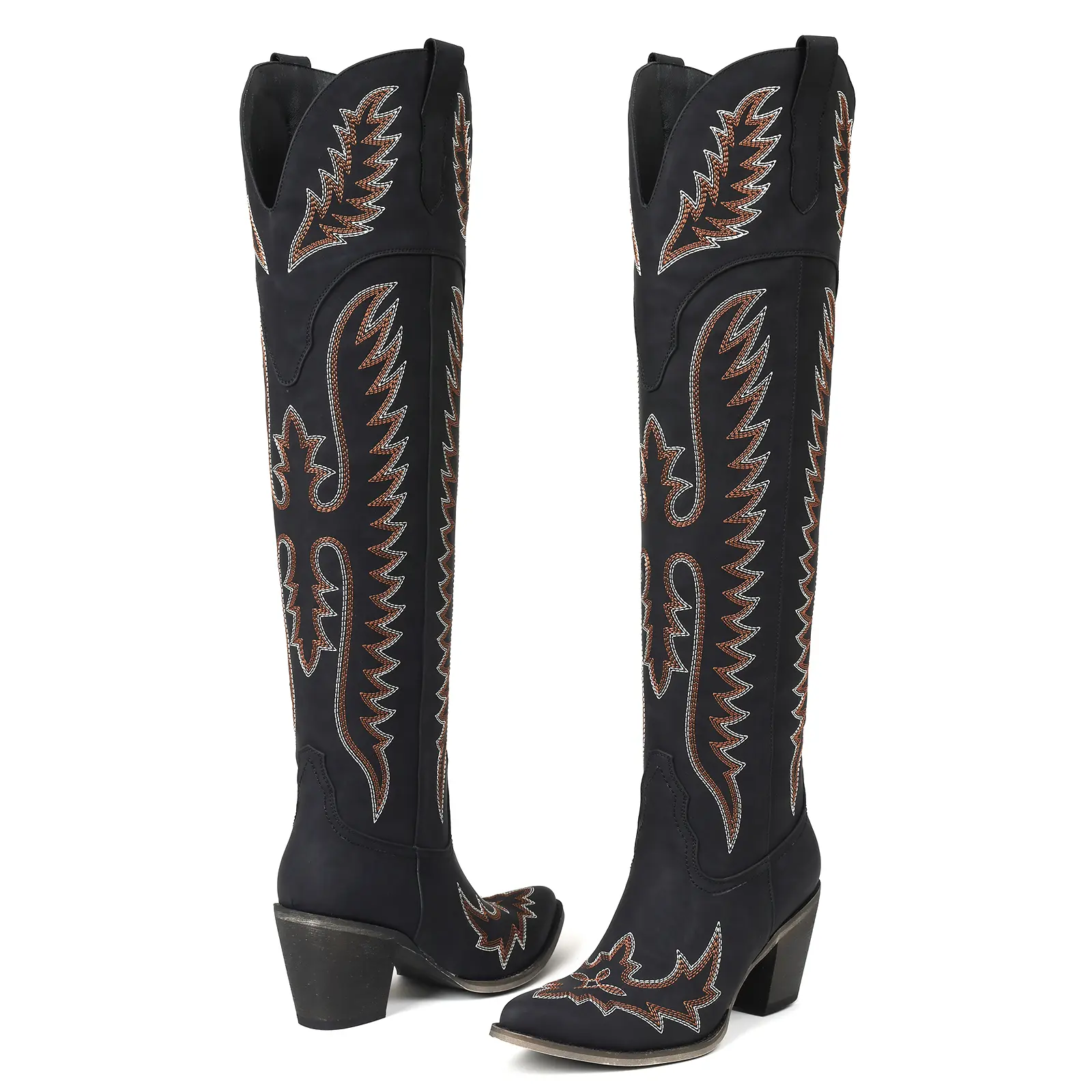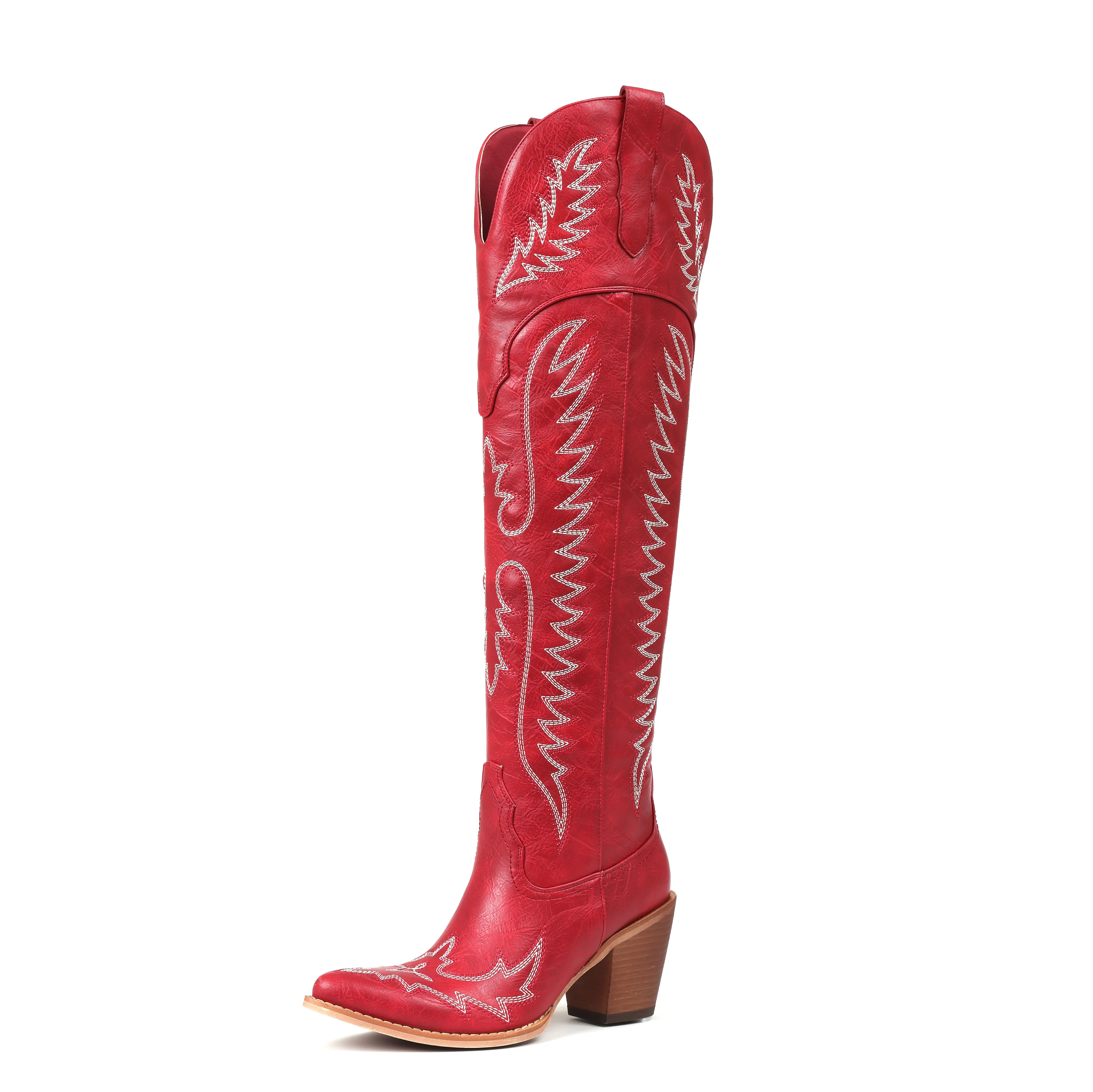 Style: These over the knee cowboy boots feature a classic Western cowgirl silhouette with intricate embroidery and a rich finish, delivering a timeless rodeo-inspired look with a modern fashion edge.
