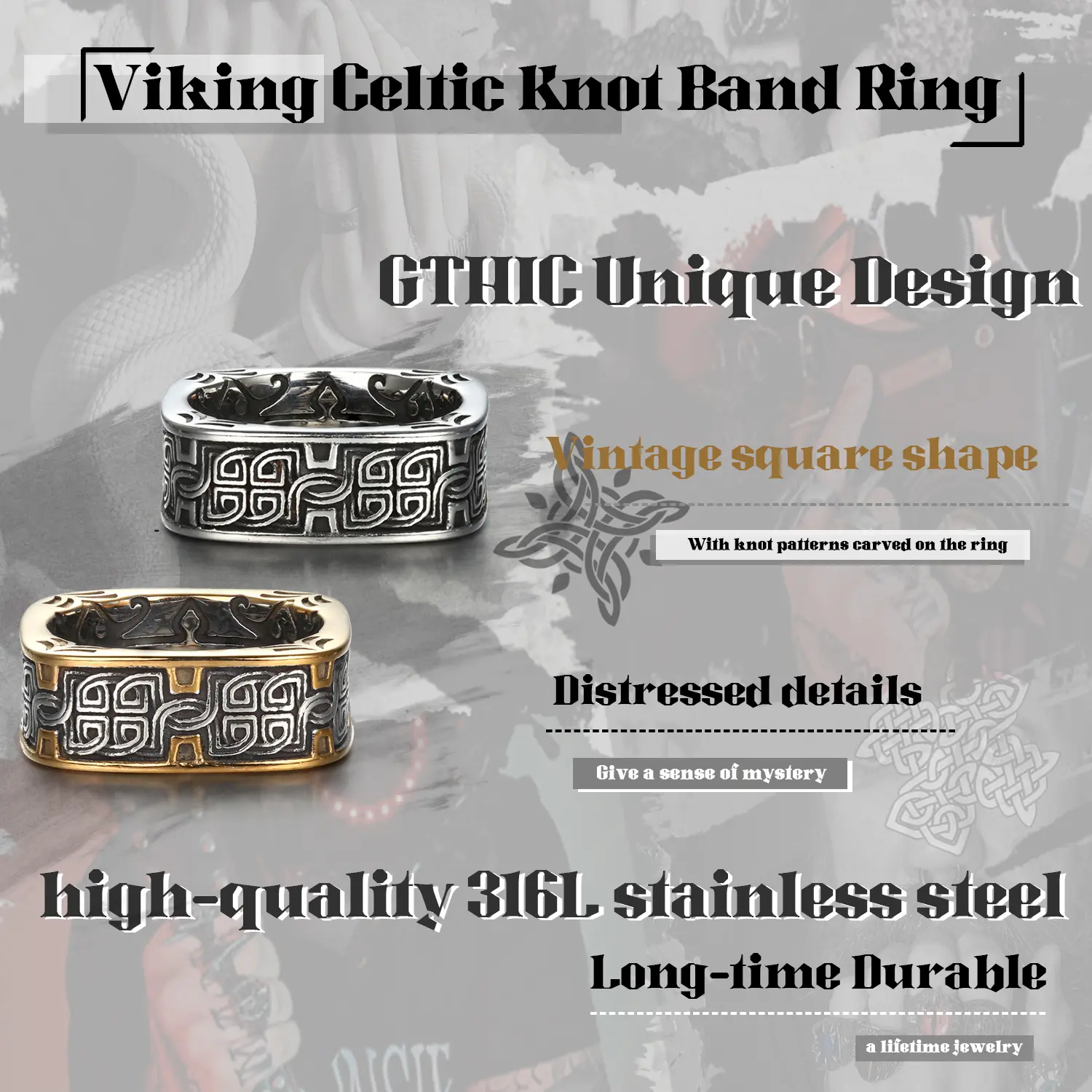 ·This Vintage Celtic Knot Stainless Steel Ring features numerous knots and stunning engravings, creating a truly unique and beautiful design. Perfect for anyone who wants to attract attention. This ring can also be worn with steampunk, punk or fantasy clothing. Beautifully styled Viking ring.Get yours now!