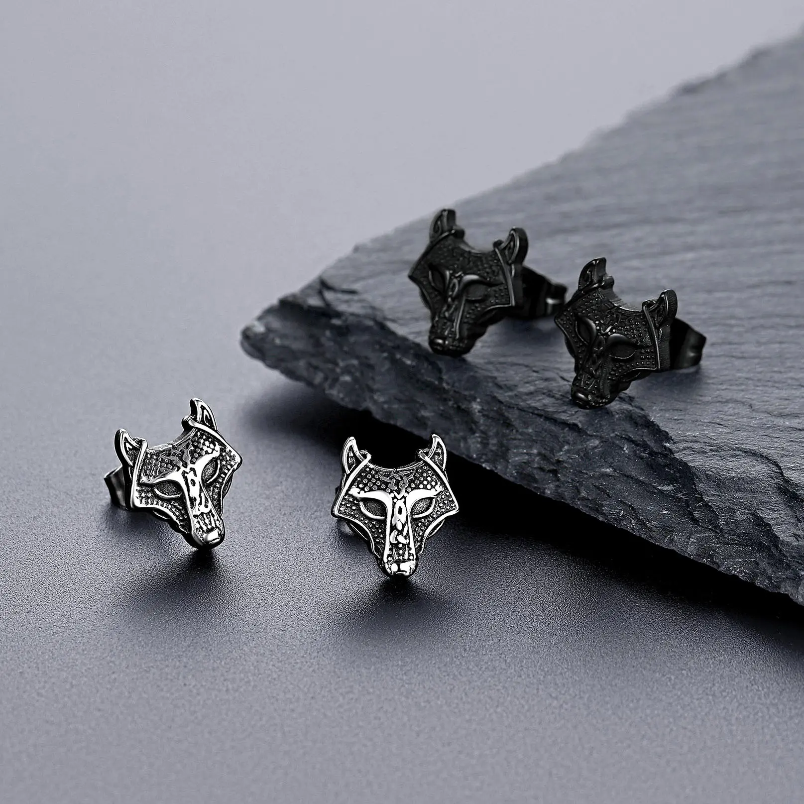 FaithHeart Viking Stainless Steel Stud Earrings Celtic Wolf Head Viking Earrings