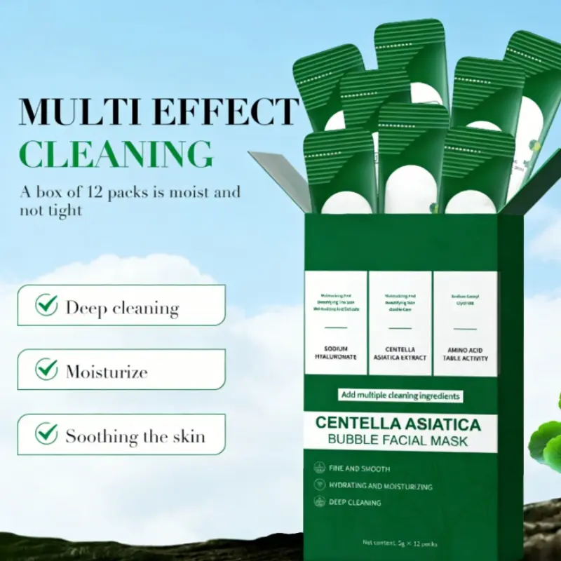 5. Centella Asiatica Bubble Face Mask, Centella Bubble Clay Mask for Blackhead Removal Deep Purifying and Moisturizing Pore Cleanser Individually Packaged, 10 Seconds to Foam - 12 Pack