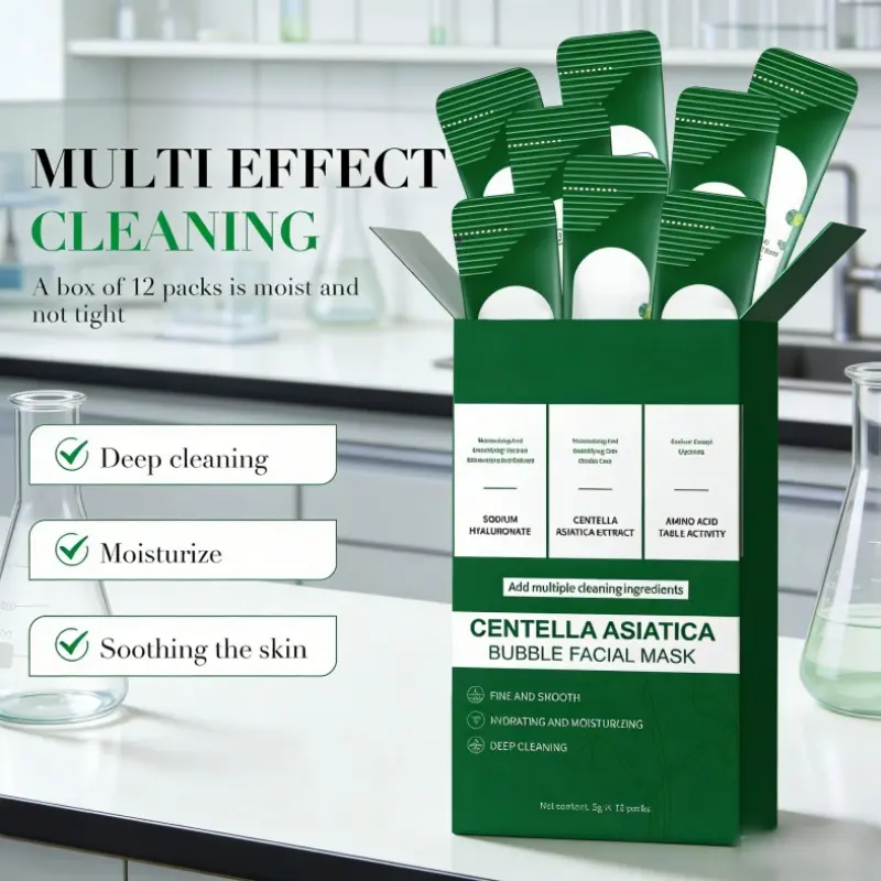 ·12PCS Centella Asiatica Bubble Face Mask is designed for blackhead removal. It offers deep purifying and moisturizing benefits. The pore cleanser is individually packaged for convenience. 🌿