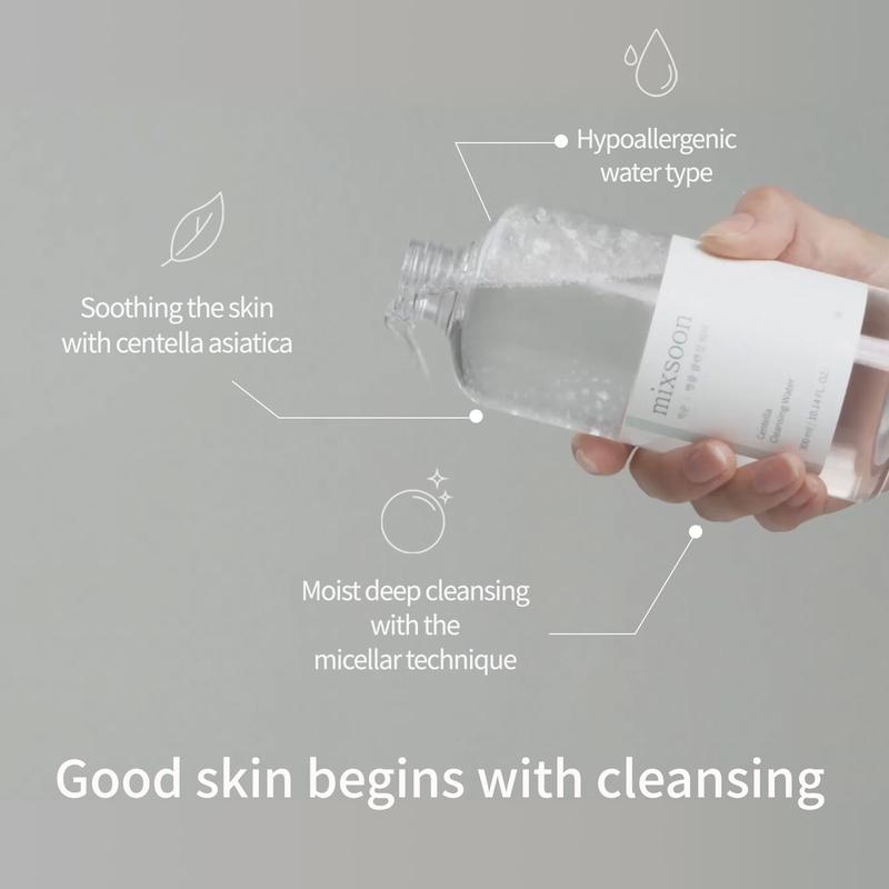 mixsoon Centella Cleansing Water Effortlessly removes makeup and impurities without stripping the skin's natural oils. #mixsoon #cleansingwater #gentleskincare