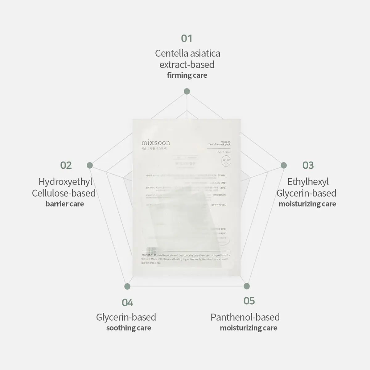 5. [mixsoon Official Shop] Centella Mask Pack 5EA - Korean Daily Hydrating Care Sheet Mask with Centella Asiatica Extract for Moisture and Soothing Skin