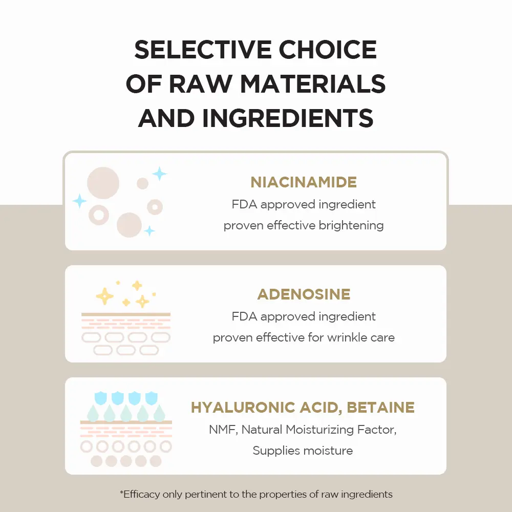 ·Centella extract, purified water, dipropylene glycol, 1,2-hexanediol, niacinamide, glucono delta-lactone, tromethamine, carbomer, sodium citrate, adenosine, disodium EDTA dipotassium glycyrrhizate, betaine, hyaluronic acid, ethylhexylglycerin