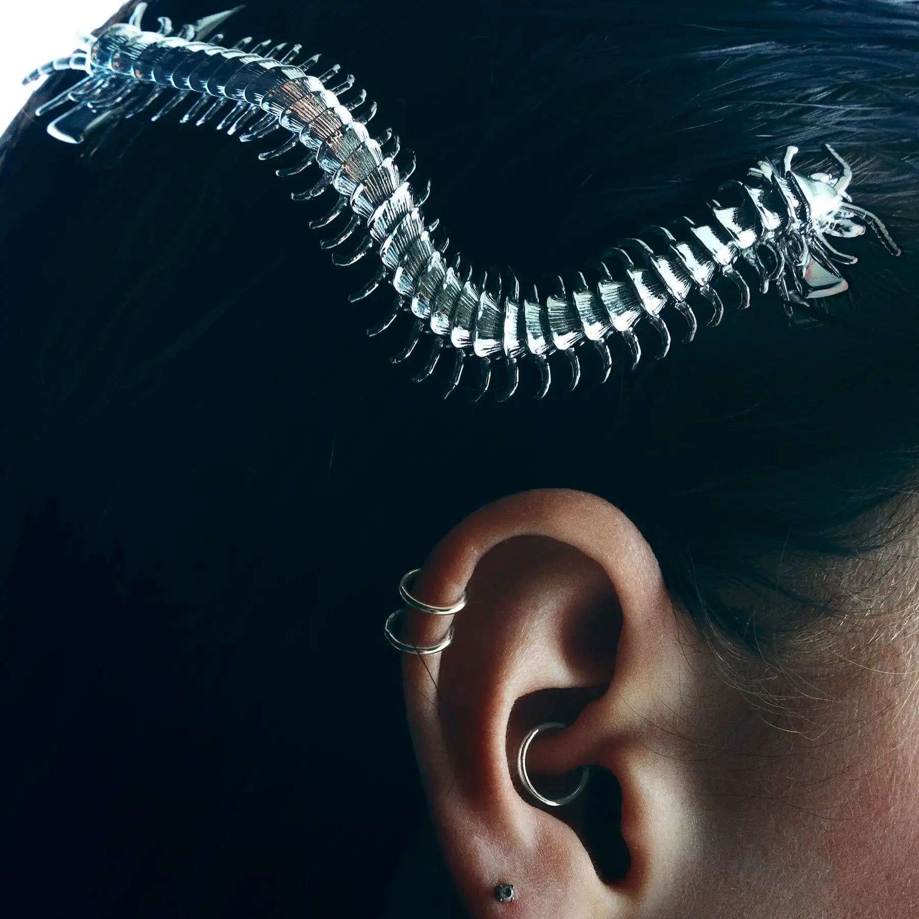 Our Centipede Hair Clip is built to look alive with a full centipede that grips your hair as if it’s burrowing and crawling through it.
