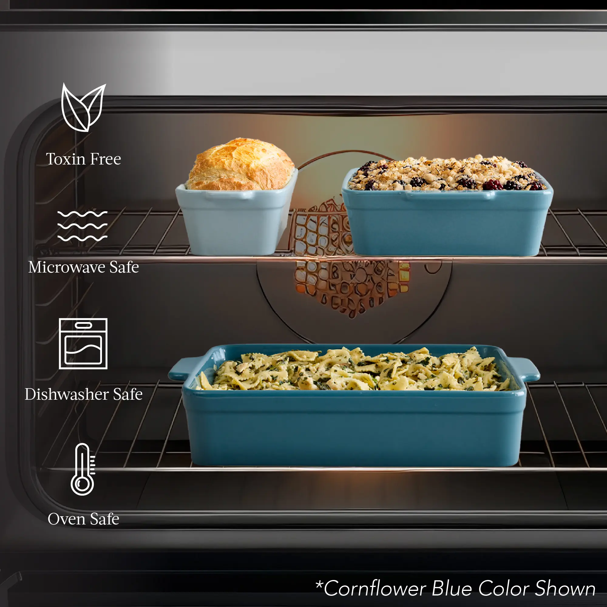 VERSATILE DESIGN: The baking dishes can double as serving dishes-serve meals straight from the oven to the table or use them as a matching set to plate food and entertain your guests