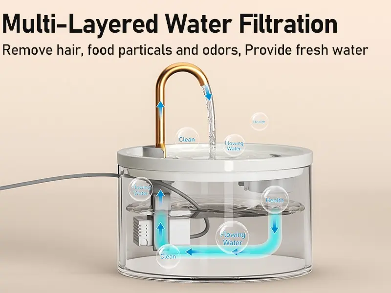 Gently flowing water mimics a natural stream or faucet, encouraging cats to drink more. Helps prevent urinary and kidney issues. 🐾