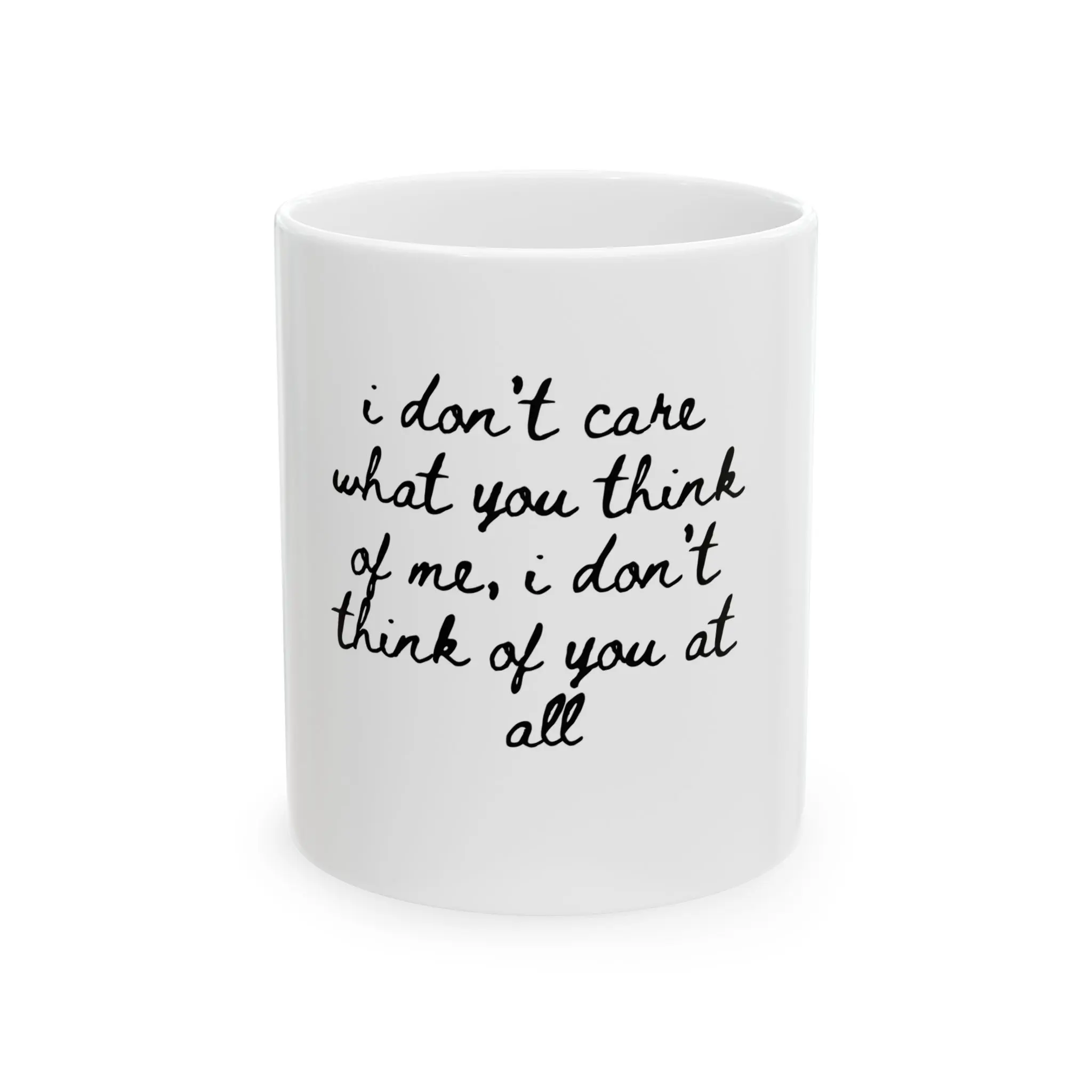 I don't care what you think of me | script text Mug | Ceramic Coffee Cup