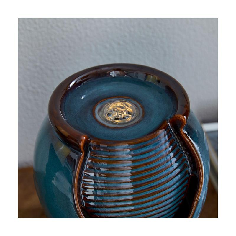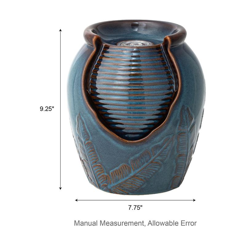 5. Glitzhome 9" Leaf Textured LED Ceramic Jar Tabletop Fountain