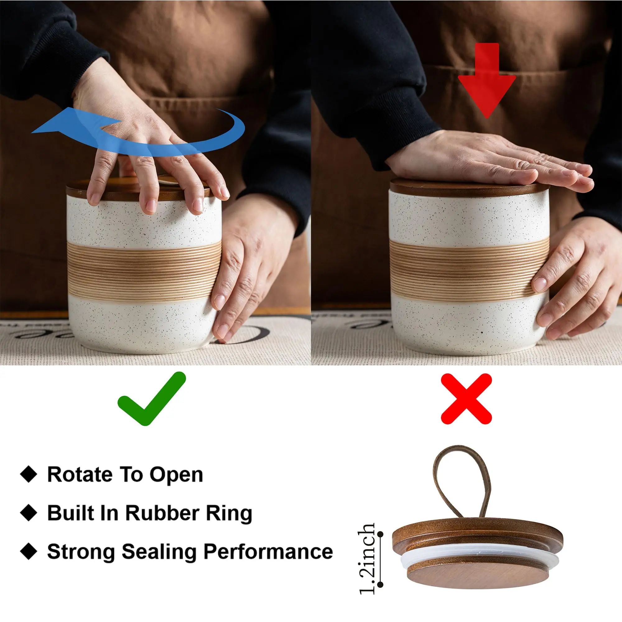 ·Rope Cover Design: Each food storage container is equipped with a wooden lid, which has strong sealing and effectively isolates air, moisture, and odors, keeping food dry and fresh, and extending the shelf life of food. There is a unique rope design on the lid, which is easy to open without losing its beauty