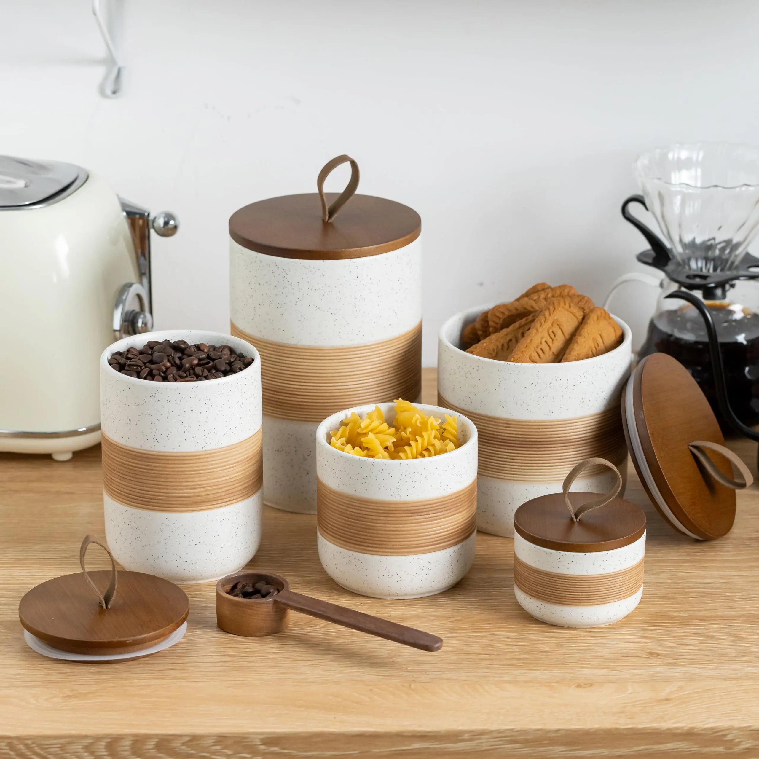 ·Stackable & Space Saving: Five ceramic jar with lid of different sizes can be stacked together, and their compact design also saves kitchen space, making the kitchen more tidy and orderly. Meanwhile, it is easy to carry for outdoor picnics or camping