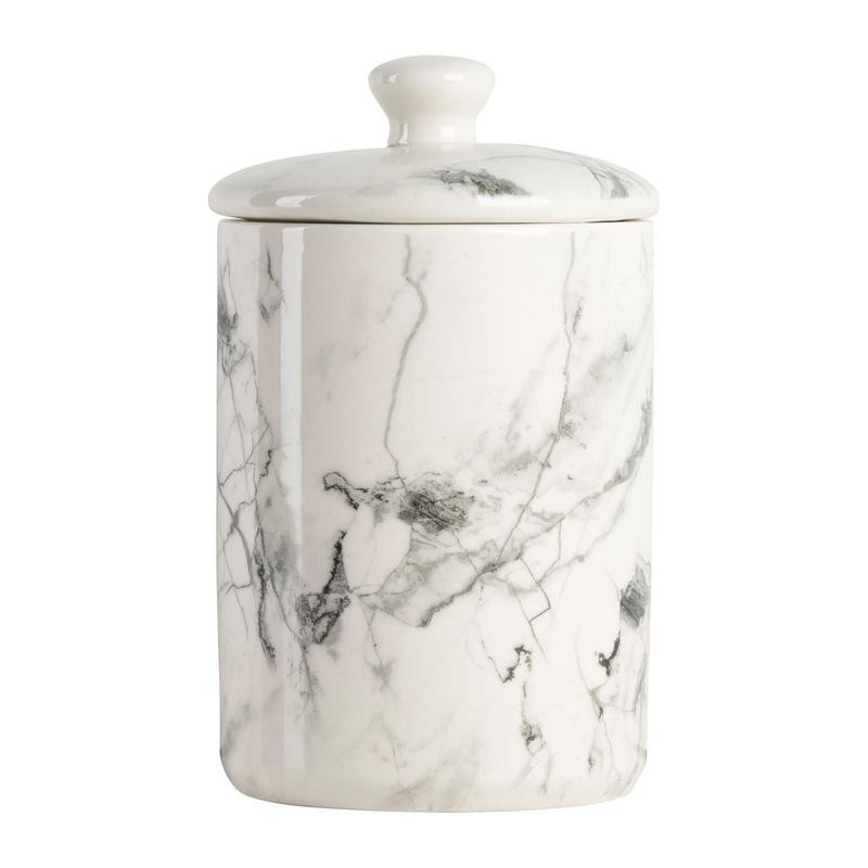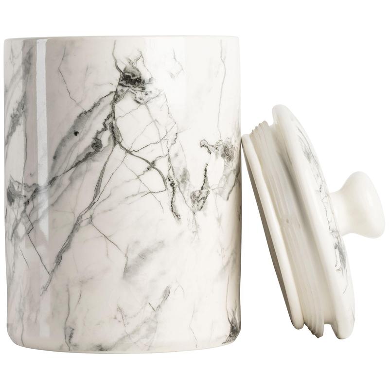 On the outside, a beautifully marbled pattern transforms these functional canisters into countertop showpieces. What's on the inside? That secret is all yours. From 10 Strawberry Street.