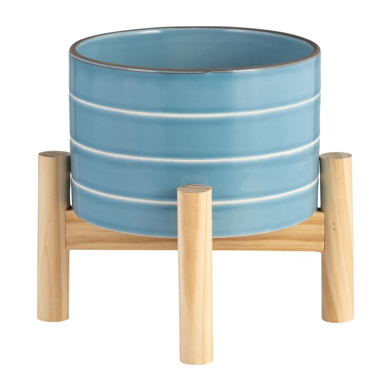 Keep things simple and pretty with this 6" Sagebrook Home ceramic planter! Designed in an attractive striped design in sky blue, we're sure this planter can fit in just about anywhere! Created from high quality materials, this durable planter will last a long time while being better for the environment than typical plastic planters are. Use this planter for indoor plants or outdoor plants. Planter includes an attractive wooden stand.
