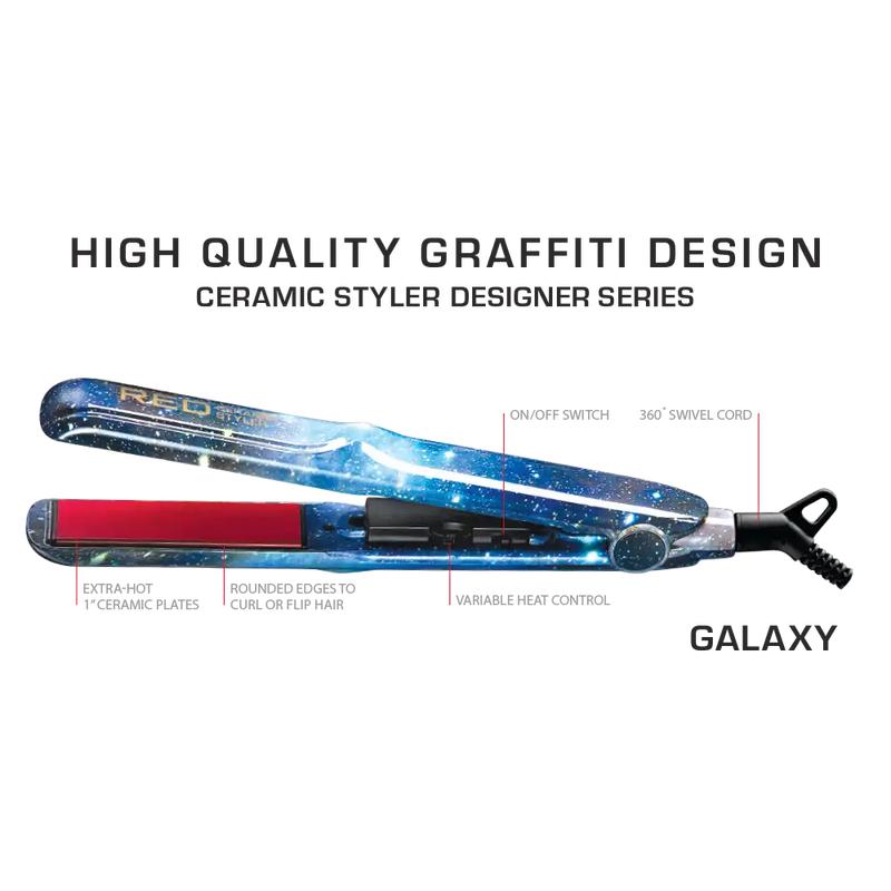Achieve salon-quality styling at home with the 1-inch RED Designer Series Ceramic Flat Iron. Experience extreme heat, silky smooth results, and a high-quality graffiti design. Perfect for straightening, curling, or flipping hair with ease