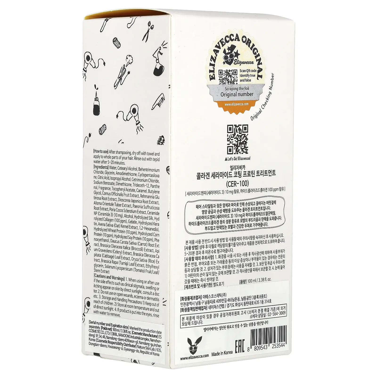 Elizavecca Cer-100, Collagen Ceramide Coating Protein Treatment, 3.38 fl oz (100 ml)