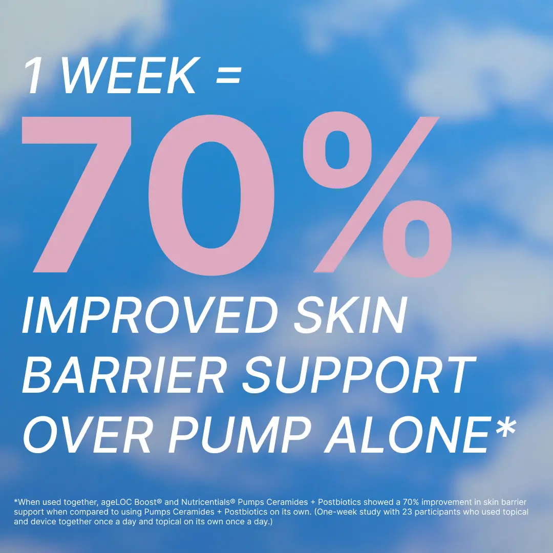 Our Nutricentials Pumps Ceramides + Postbiotics fortifying formula, made with worry-free ingredients, helps protect against, and increase resiliency to, everyday stressors thanks to our Bioadaptive Botanical Complex. At the same time, a blend of three skin-identical ceramides, specially sourced Glass Microalgae, and Lactobacillus Ferment (a postbiotic that’s gentle on your skin’s natural microbiome) all work together to protect and strengthen your skin’s vital moisture barrier. And to top things off, Ectoin, Apple Extract, and an Amino Acid Blend add a burst of extra hydration, helping soothe and visibly smooth your skin for a gorgeous finish.