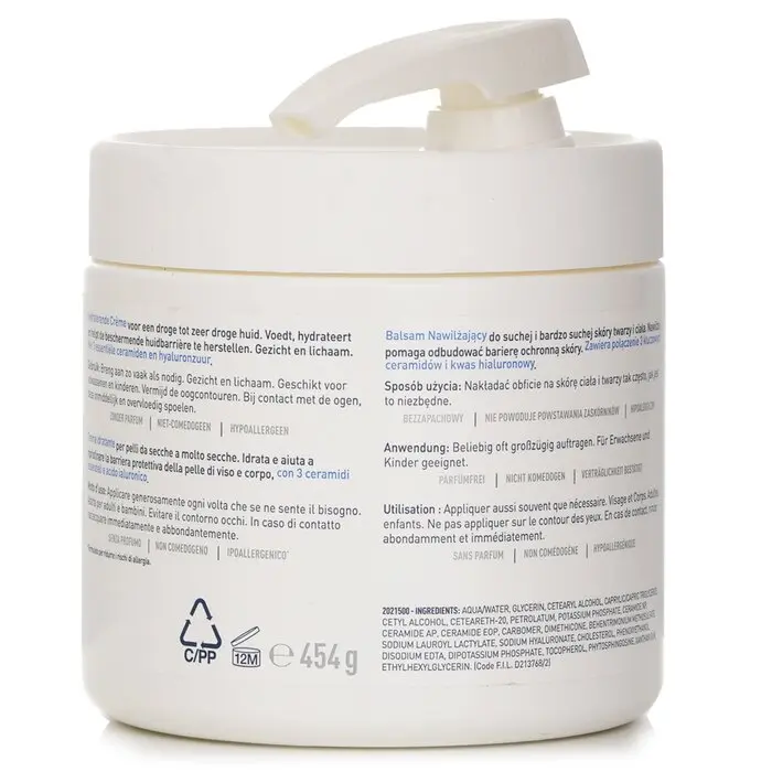 A gentle barrier-restoring moisturizer for dry & very dry skin on the face & body  Features a rich, non-greasy, fast-absorbing texture  Harnesses MVE Technology, a patented delivery system that continually releases moisturizing ingredients for 24-hour hydration  Contains three essential ceramides to lock in moisture & maintain skin’s natural barrier  Enhanced with Hyaluronic Acid to retain skin’s natural moisture  Keeps skin soft, healthy & hydrated  Non-comedogenic & fragrance-free  Developed with dermatologists