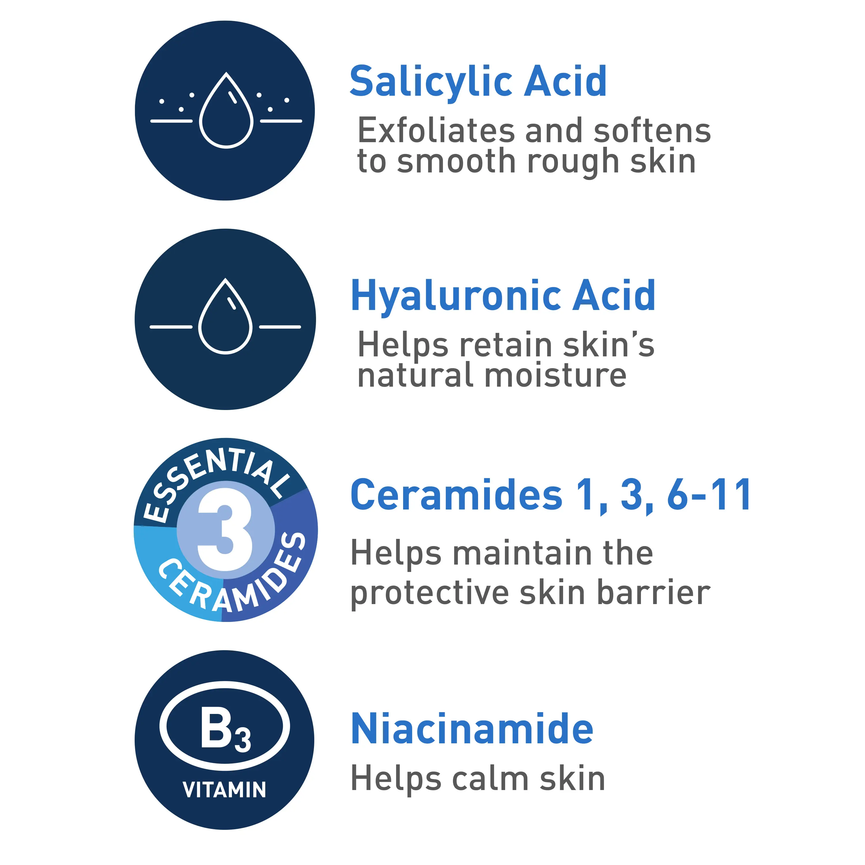 | Ingredients | AQUA / WATER / EAU,GLYCERIN,PARAFFINUM LIQUIDUM / MINERAL OIL / HUILE MINERALE,TRIETHANOLAMINE,SALICYLIC ACID,GLYCERYL STEARATE,AMMONIUM LACTATE,PEG-100 STEARATE,CETEARYL ALCOHOL,CETYL ALCOHOL,ZEA MAYS OIL / CORN OIL,CERAMIDE NP,CERAMIDE AP,CERAMIDE EOP,CARBOMER,BEHENTRIMONIUM METHOSULFATE,DIMETHICONE,METHYLPARABEN,SODIUM LAUROYL LACTYLATE,CHOLECALCIFEROL,CHOLESTEROL,DISODIUM EDTA,PROPYLPARABEN,HYDROLYZED HYALURONIC ACID,PHYTOSPHINGOSINE,XANTHAN GUM |