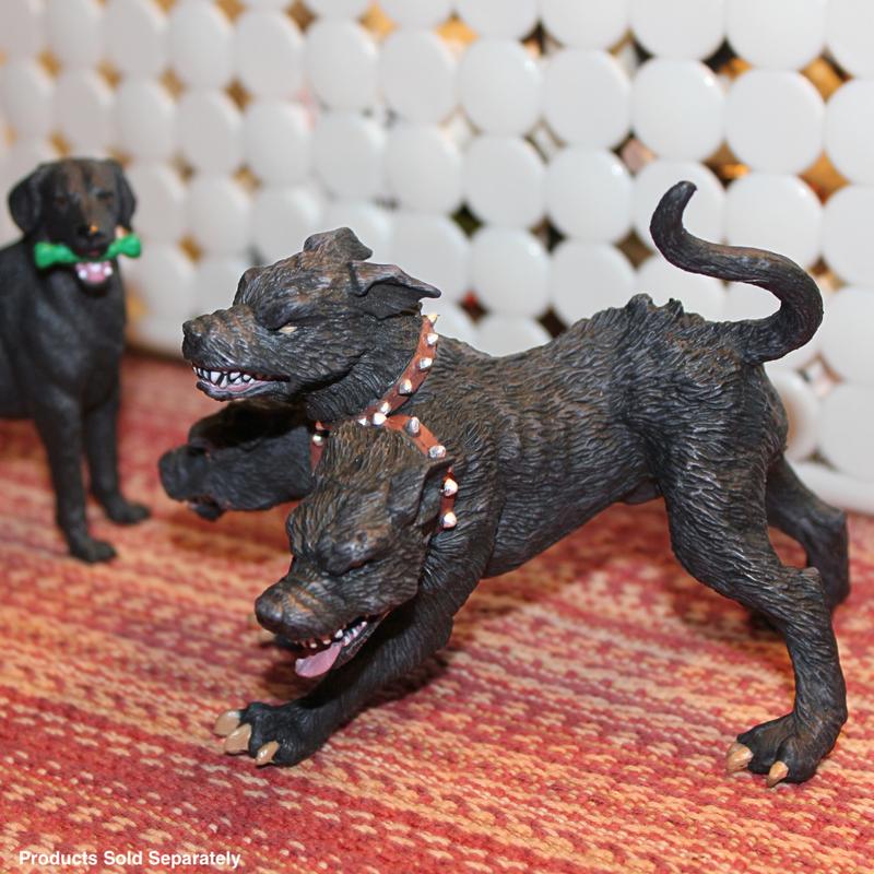 ·Size and Color: Silver-studded red collars contrast with the black fur of Cerberus, creating a sleek look to this guard dog of Hades. The figure is 4 ¾ inches long, about the same as a DVD.