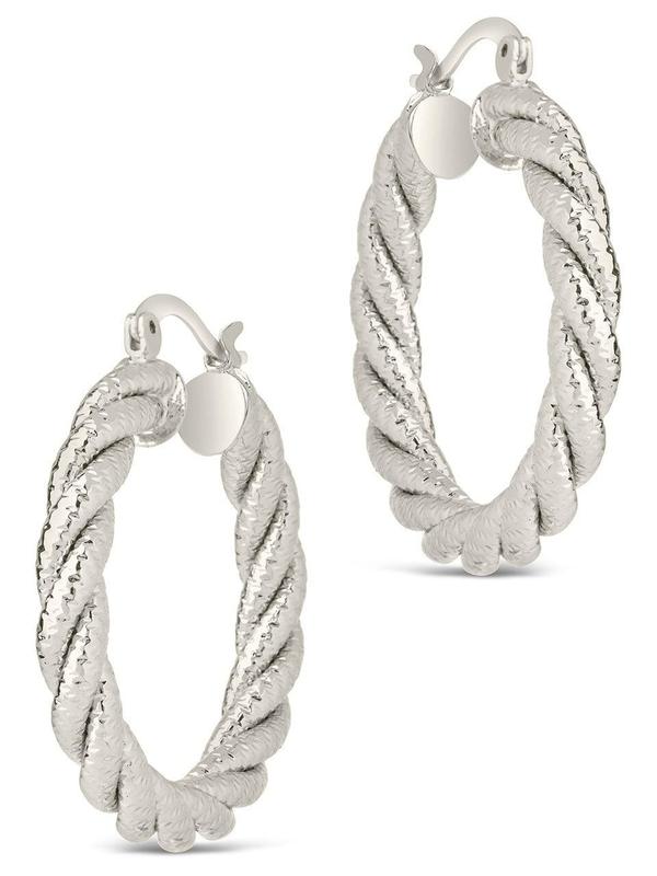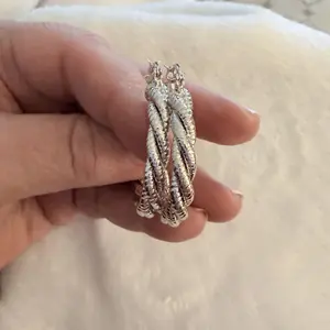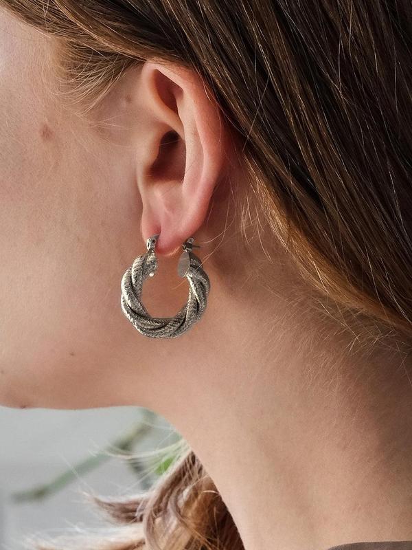 You can never go wrong with a good hoop! Love the different textures on these. Sturdy earrings but lightweight. May have to grab them in gold too. 🤩